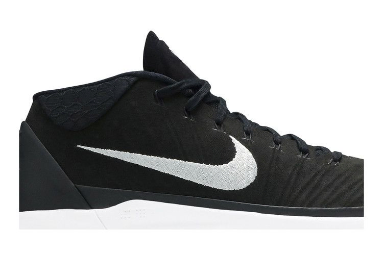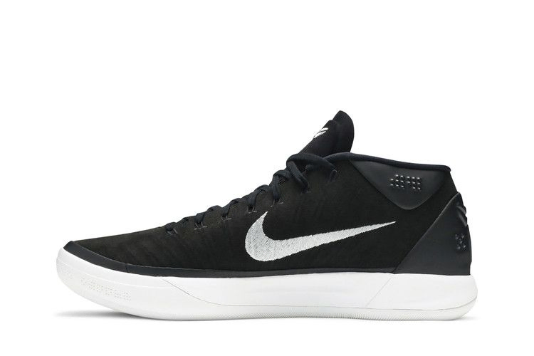 Эта черно-белая версия Nike Kobe AD Mid - одна из семи командных расцветок, выпущенных в сентябре 2017 года. Кроссовки имеют дышащий сетчатый верх черного цвета и белую промежуточную подошву из пеноматериала Lunarlon с технологией Zoom Air для повышения энергоотдачи.
