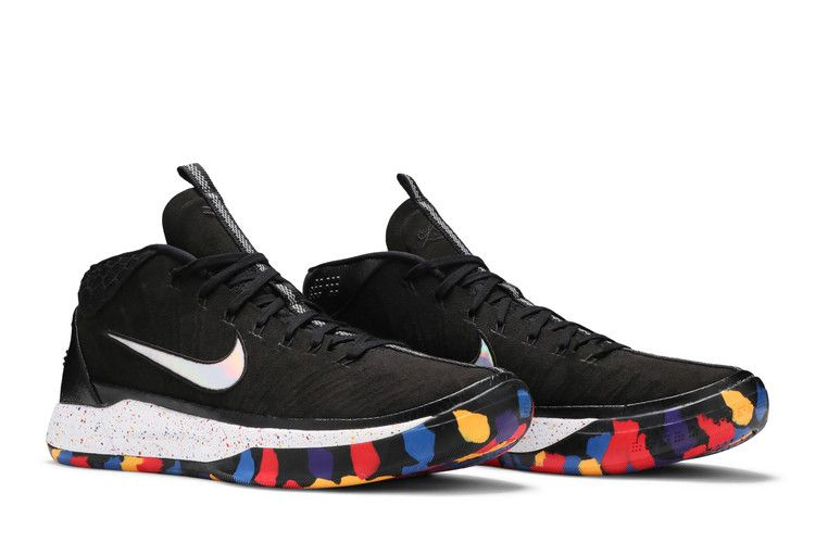 Выпущенная к баскетбольному турниру NCAA 2018 года, эта модель Kobe A.D. имеет черный верх, пятнистую межподошву и переливающийся Swoosh. Выделяющийся элемент силуэта находится на подошве, где красные, желтые, синие и пурпурные штрихи украшают черную основу. Расцветка "NCAA Tournament" предлагает уникальный подход к обуви, которая ознаменовала окончание игровой карьеры Black Mamba.