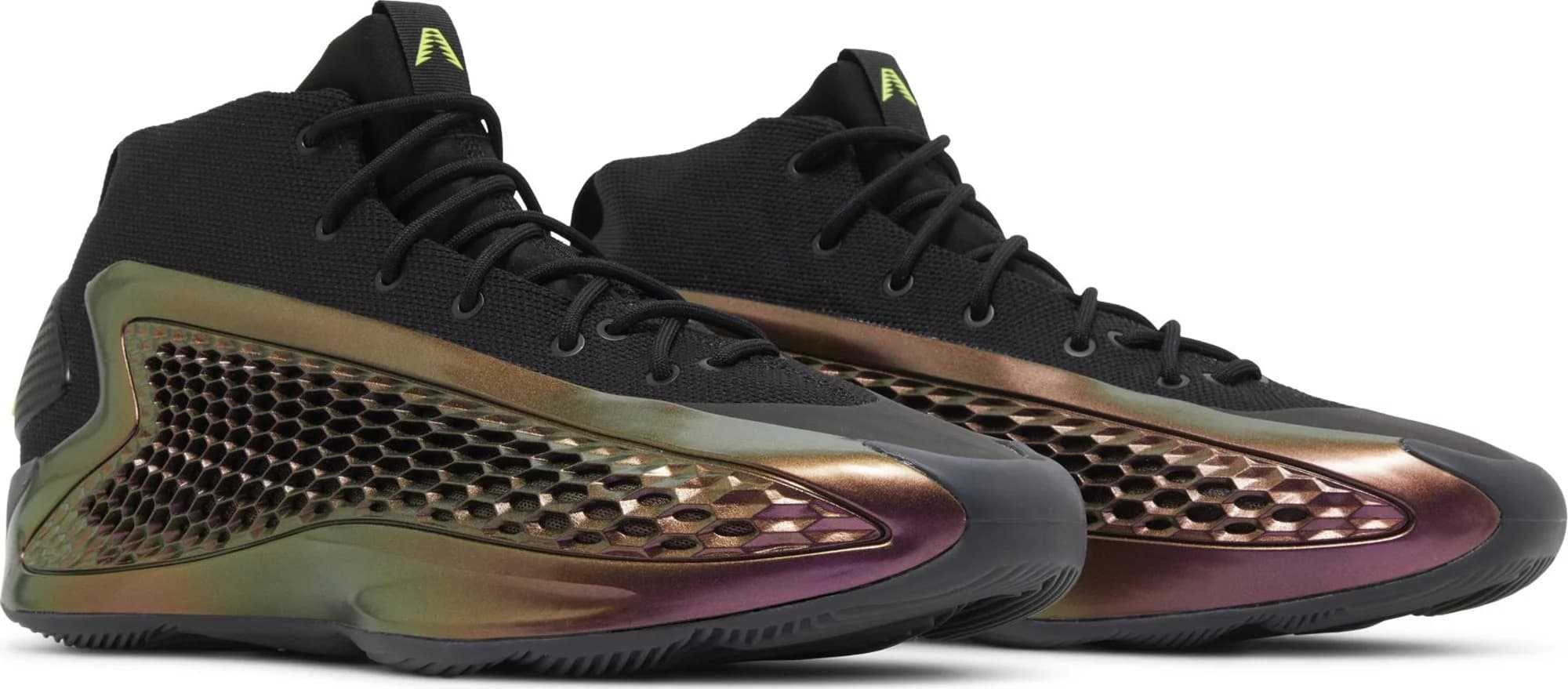 adidas AE 1 The Future - это сверкающая расцветка дебютных фирменных кроссовок Энтони Эдвардса, которые вошли в линейку adidas 2024 NBA All-Star. Верхняя часть из черного трикотажного текстиля имеет эластичную манжету, напоминающую носок, формованные из TPU опорные крылья цвета бордовый металлик дополняют образ. Тисненый трехполосный брендинг лаймово-зеленого цвета придает яркий оттенок задней части пятки. Кроссовки установлены на промежуточную подошву Jetboost в клетку с амортизацией Lightstrike.- Цвета: Core Black/Carbon/Lucid Lemon