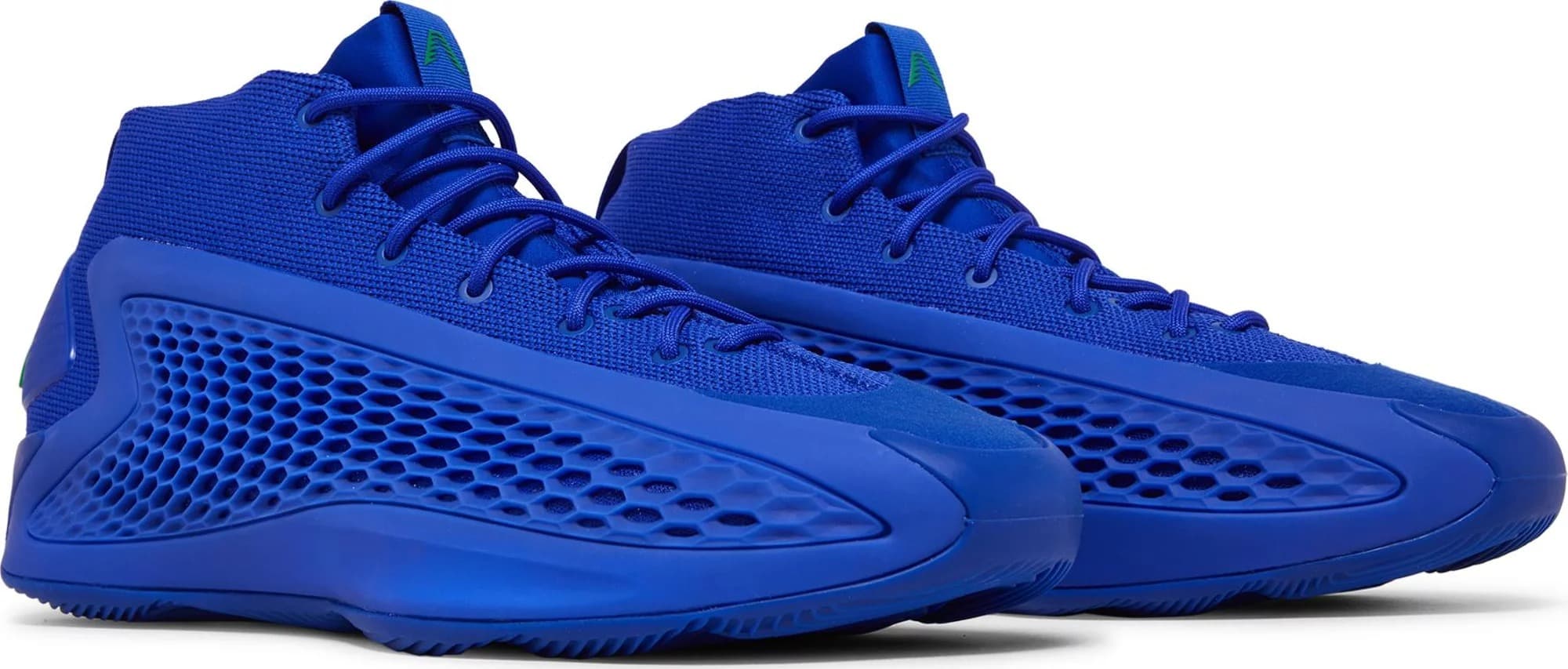 Кроссовки adidas AE 1 Velocity Blue - это монохромная версия фирменной обуви Энтони Эдвардса. Смелый оттенок синего заполняет верхнюю часть, изготовленную из дышащего текстиля с большими опорными крыльями из TPU для боковой устойчивости. Однотонная отделка нарушается зелеными полосками, выбитыми на задней части пятки. Легкая амортизация обеспечивается за счет полноразмерной промежуточной подошвы Boost, обтянутой подобранным по цвету каркасом из TPU и усиленной пеной adidas Lightstrike.- Цвета: Lucid Blue/Green/Lucid Blue