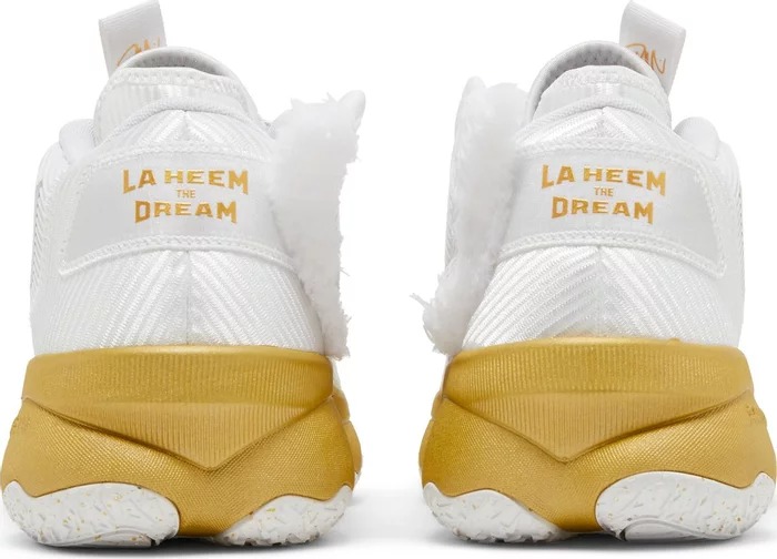 Модель adidas Dame 8 Laheem The Dream обновляет восьмую фирменную обувь Дэмиана Лилларда, добавляя нейтральные тона и экологичную конструкцию. Переработанные материалы, полученные из отходов производства, включены в дышащий сетчатый верх белого цвета с серебристыми акцентами. Кроссовки установлены на промежуточной подошве Bounce Pro двойной плотности, усиленной резиновой подошвой, предназначенной для сцепления с паркетом.- Цвета: Обувь белого цвета, Металлик-серебряный, Золотой