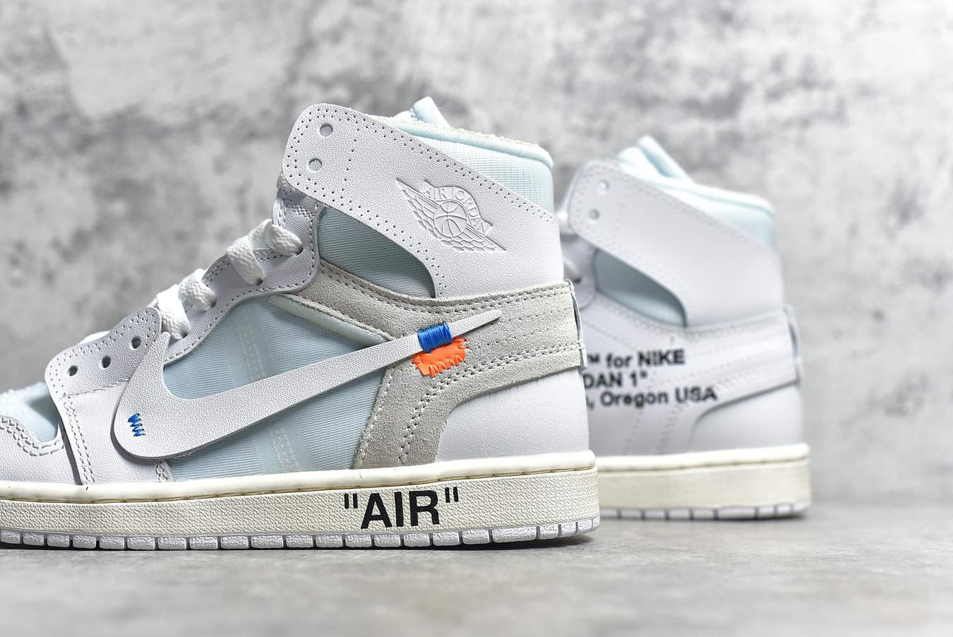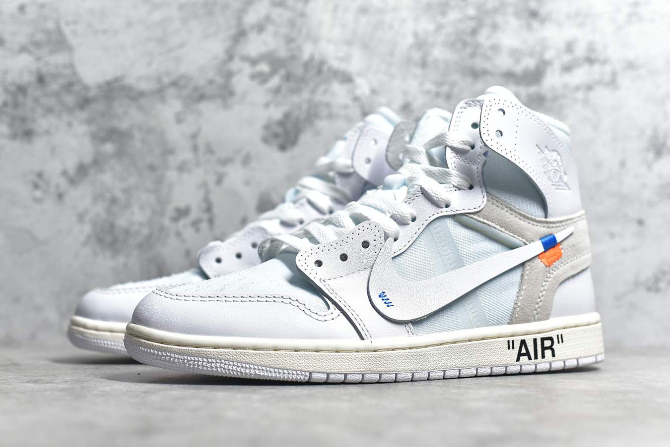 Модель Off-White x Air Jordan 1 Retro High OG 'White' 2018, вдохновленная цветовыми решениями Air Jordan 1, представляет собой переосмысление своего предшественника в стиле "Чикаго". Модель, разработанная Вирджилом Аблохом, имеет полностью белый верх из премиальной кожи и сетки с деконструированным брендингом Swoosh и синими деталями, а также логотипами Wings на лодыжках. Модель дополнена черной надписью "AIR" на межподошве, черным текстом "Off-White™ for NIKE" на боковых панелях и оранжевыми язычками.- Цвета: White/White