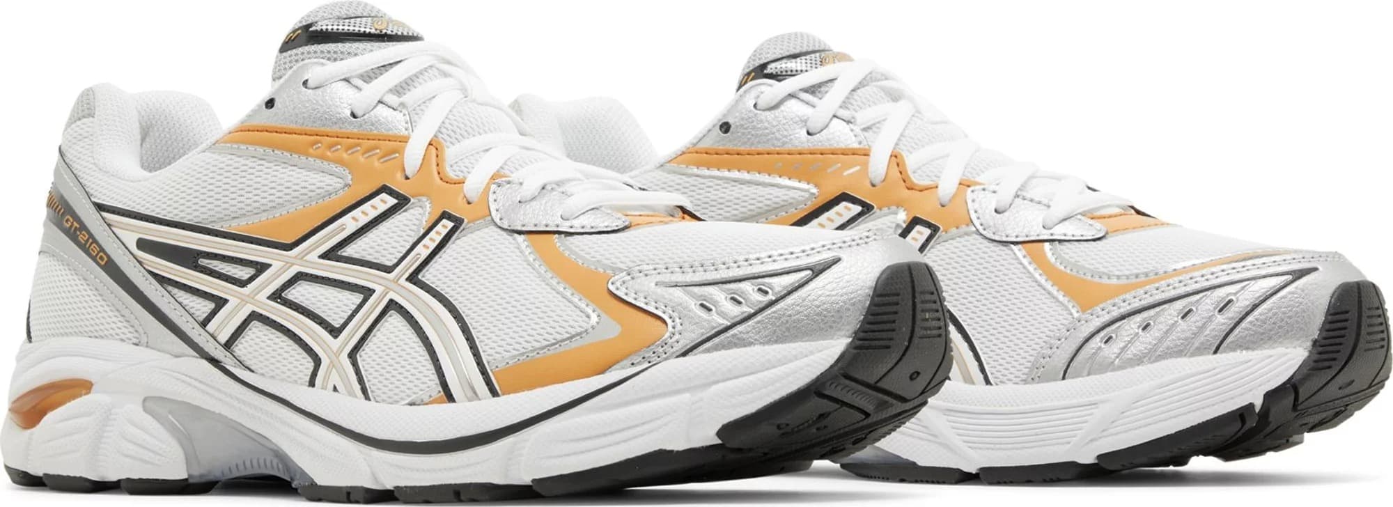Модель Asics GT 2160 White Orange Lily повторяет технический язык дизайна долгоиграющей серии GT-2000 начала 2010-х годов. В этой модели используется дышащий белый сетчатый верх с накладками из искусственной кожи серебристого и оранжевого цвета. Легкая промежуточная подошва из ЭВА дополнена вставкой GEL оранжевого цвета в пятке для защиты от ударов и плавного хода. Под подошвой из резины видна система поддержки ASICS TRUSSTIC - пластина из TPU для устойчивости в средней части стопы.- Цвета: White/Orange Lily