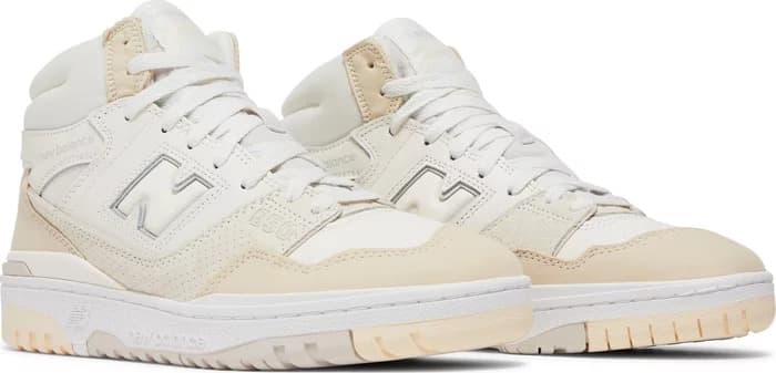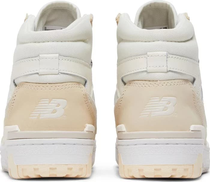 Новый дизайн New Balance 650R Beige возвращает к стилю 90-х годов, вдохновленному цветовым блоком OG. Как и подобает ретро-моде, новый дизайн сохраняет типичную двухцветную эстетику с несколькими акцентами бежевого цвета. Белый цвет явно является доминирующим, что видно по его преобладанию на носке, верхней части, шнурках и даже на люверсах и язычке.