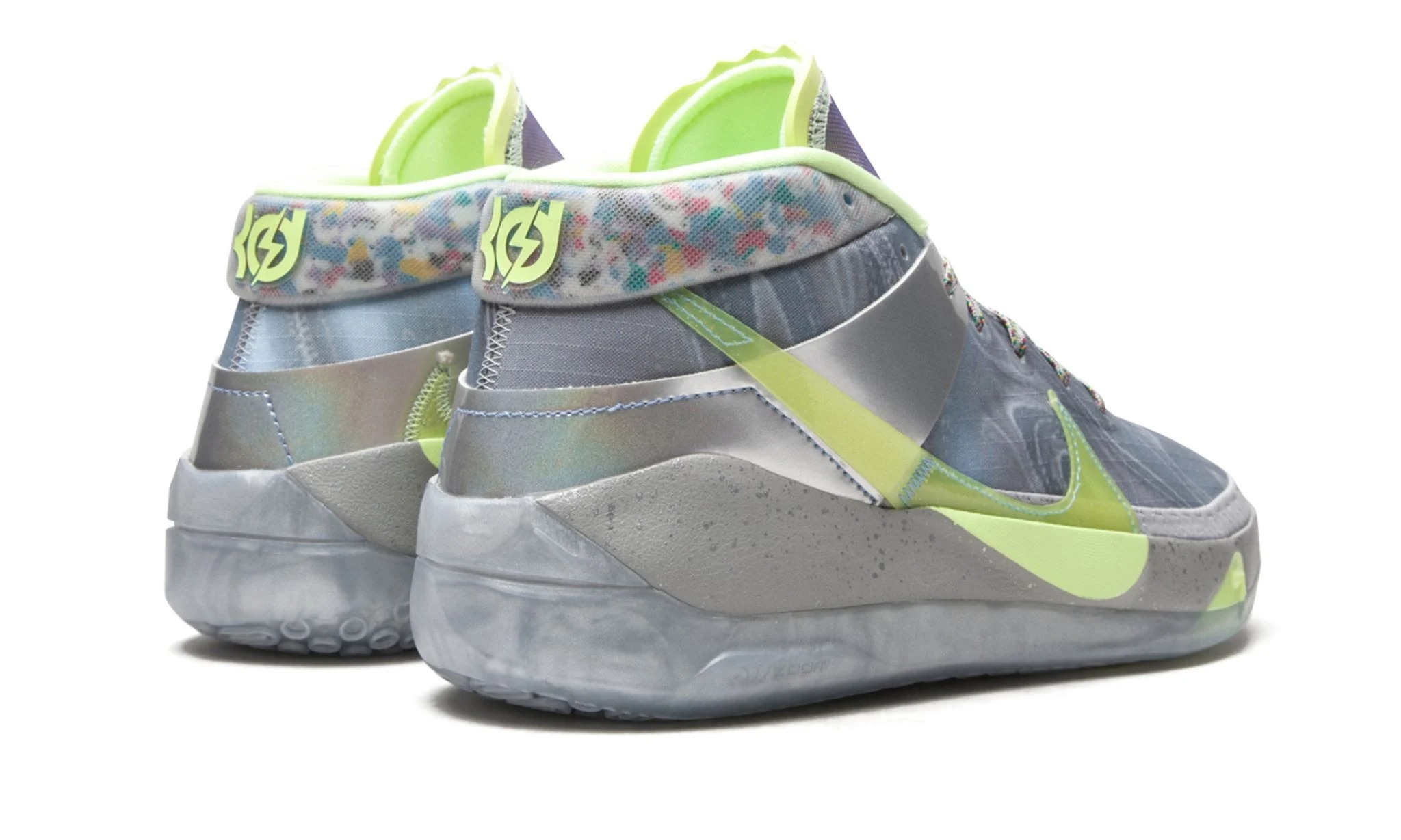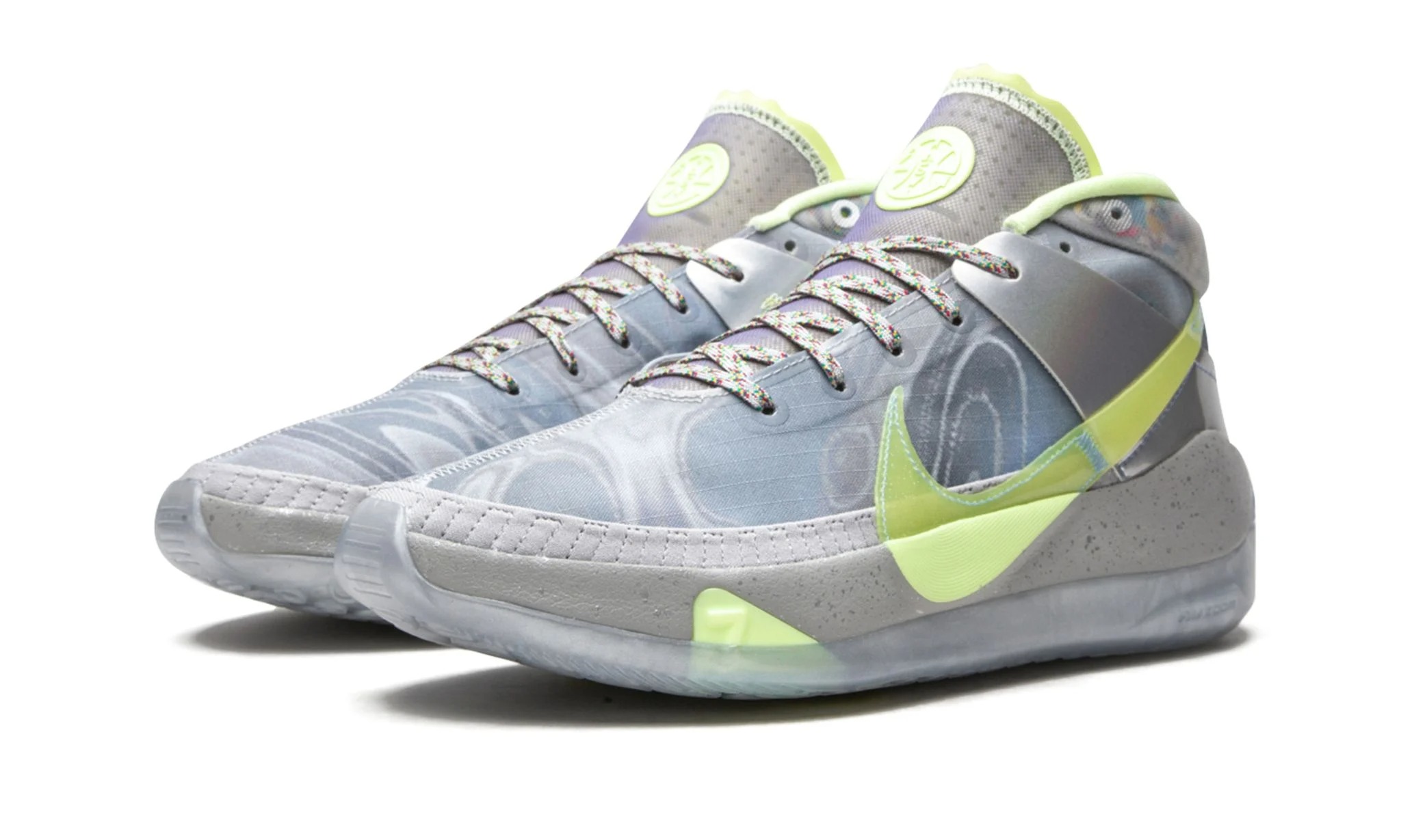 Энергия, которая движет Кевином Дюрантом движется сквозь него, как молния, и превращается в точные кинетические удары на площадке. Модель KD13 "Play for the Future" вдохновлена чистой электрической энергией, которая может стать источником энергии для мира будущего. В расцветке использовано заряженное сочетание платинового оттенка, серебристого металлика и синего цвета Pulse Blue - электрических цветов, символизирующих суперсилу KD и постоянную приверженность Nike Basketball к чистой, возобновляемой энергии.- Цвета: Platinum Tint/Metallic Silver/Royal Pulse/Barely Volt