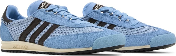 Модель Wales Bonner x adidas SL 76 Ash Blue, созданная в рамках совместной капсульной коллекции, возрождает винтажные кроссовки, дебютировавшие на летних Олимпийских играх 1976 года в Монреале. Изящный силуэт выполнен из синей сетки с тональными накладками из мохнатой замши на носке и пятке. Черная кожа использована на фирменных трех полосках и заднем язычке, отмеченном трилистником adidas и украшенном декоративной строчкой. Двойной брендинг украшает язычок и носок. Кроссовки дополнены белой промежуточной подошвой из ЭВА и черной резиновой подошвой.- Цвета: Ash Blue/Core Black/Ash Blue