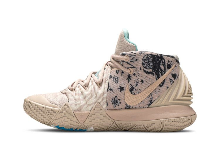 Nike Kybrid S2 "Desert Camo" выполнены в нейтральных бежевых тонах и представляют собой гибридный силуэт, в котором сочетаются элементы четвертого, пятого и шестого фирменных силуэтов Кайри Ирвинга. Несочетаемые принты используются во всем текстильном верхе, включая подкладку воротника и накладку, вдохновленную мухоловкой Venus. Последняя выделена тиловым цветом, что придает ей контрастный оттенок. Верхняя часть опирается на полноразмерную подошву из пеноматериала Cushlon, а пятка дополнена амортизацией Zoom Air.