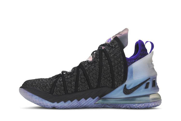 Kylian Mbappé x Nike LeBron 18 NRG 'The Chosen 2' демонстрируют особый дизайн, объединяющий двух разных спортивных икон, которые воплощают дух своих игр и сообществ. Черный верх Knitposite 2.0 украшен яркими правыми вышивками Swooshes на боковом носке и переливающимся металлическим язычком, на котором красуется двойной брендинг LeBron и Kylian. Нежные фиолетовые и синие тона выделяют литой пяточный клип и резиновую подошву, между которыми располагается объемный блок Max Air с амортизацией Zoom Air.