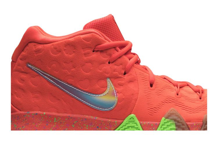 Как и миллионы американцев, Кайри Ирвинг часто начинает свой день с порции хлопьев. В честь такого выбора завтрака выпущена специальная упаковка с хлопьями, состоящая из трех вариантов расцветки Kyrie 4. Эта пара вдохновлена Lucky Charms и представлена в красном и зеленом цветах, отражающих дизайн коробки с хлопьями. Кроме того, на боковых панелях кроссовок выбиты фирменные зефирные фигурки Lucky Charms.