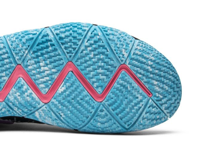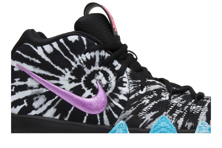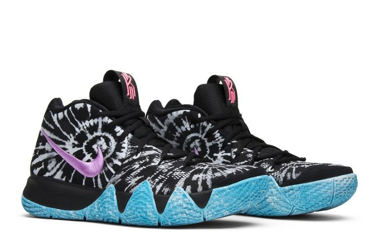 Вдохновленные лос-анджелесским районом Венис-Бич, эти Kyrie 4 "All Star" имеют непринужденную графику в стиле tie-dye на верхней части и ярко-розовый Swoosh в центре. Под ногами черная подошва с каблуком Zoom Air и подошва цвета океана дополняют пляжную атмосферу.