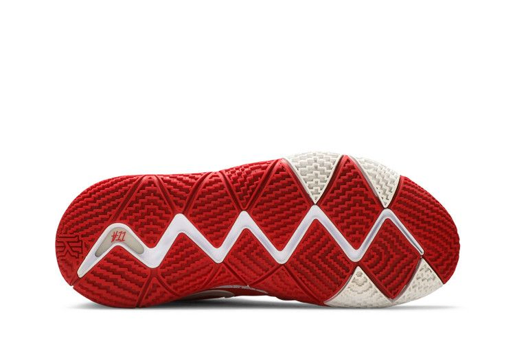 Kyrie 4 "University Red" оснащены гибким сетчатым верхом University Red, предназначенным для улучшения адаптации передней части стопы, а промежуточная подошва состоит из технологий Cushlon и Nike Zoom Air. Зигзагообразный дизайн гибких канавок на подошве служит для сцепления с поверхностью, а изогнутые края призваны помочь во время спринта.