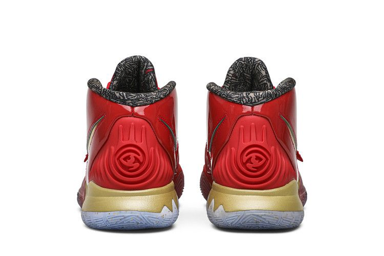 Модель Kyrie 6 "Trophies", выпущенная в рамках коллекции Nike NBA All-Star 2020, посвящена чемпионскому титулу "Чикаго Буллз" 1996 года. Фирменные кроссовки Кайри Ирвинга выполнены в красном и золотом цветах, а лакированная кожа вдохновлена кроссовками Air Jordan 11, которые Джордан носил в том сезоне. Цифры "23" и "45" изображены на медиальной стороне каждой модели, что напоминает о сменных номерах джерси MJ, а на носках - ковровое покрытие в раздевалке "Быков".