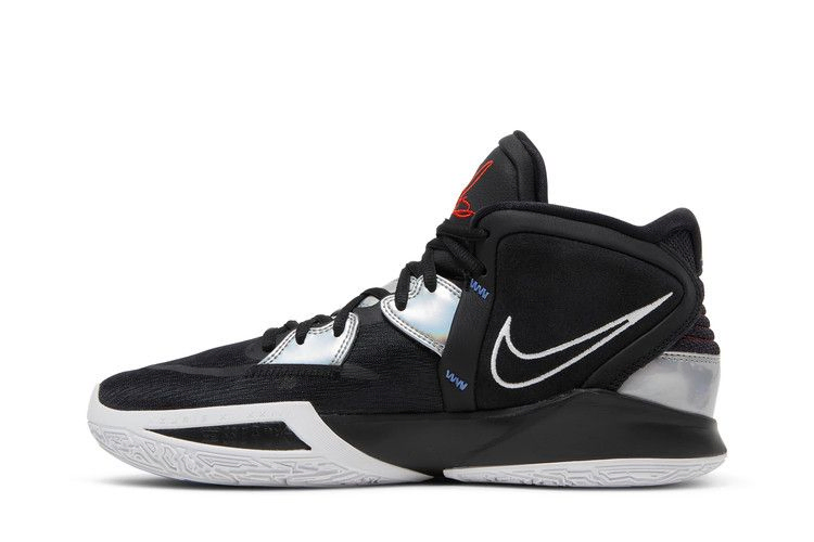 Nike Kyrie Infinity 'Fire and Ice' обновляет фирменную обувь Кайри Ирвинга, добавляя несочетаемые акценты, которые отражают тему двойственности обуви. Черный сетчатый верх оснащен динамичными внутренними лентами, выполненными в переливающемся серебристом цвете и интегрированными в систему шнуровки для надежной фиксации. Подпись Кайри вышита малиновой строчкой на правом язычке, а на противоположном язычке изображен кубик льда, охваченный пламенем. Асимметричный дизайн продолжается на несовпадающих пятках с красным и синим логотипами "KI", и те же контрастные оттенки нанесены на боковую промежуточную подошву каждой модели.