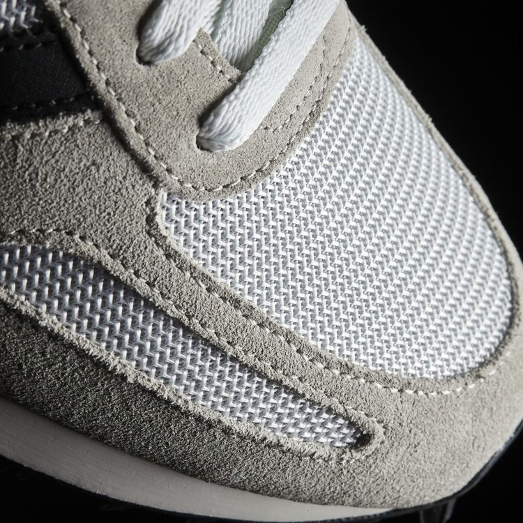 adidas возрождает модель LA Trainer из архива 80-х. Верхняя часть кроссовок выполнена из замши и сетки в кремовых и винтажных белых тонах. Черные полоски контрастируют с фирменными красными, белыми и синими кругами на подошве.
