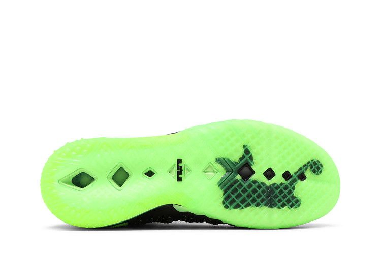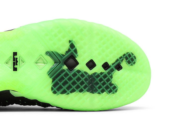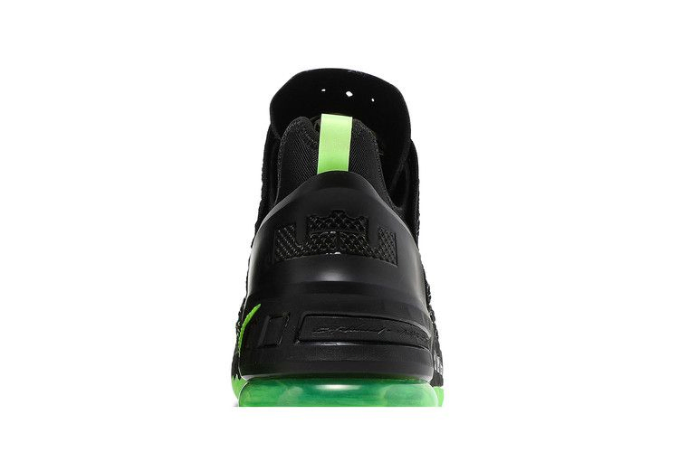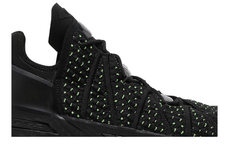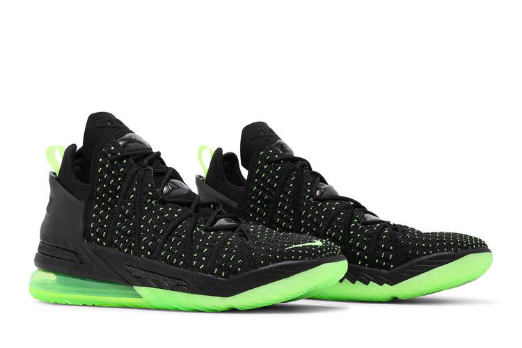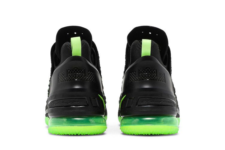 Nike LeBron 18 'Dunkman' возвращается к знакомой теме дизайна, которая первоначально дебютировала на Nike Zoom LeBron 2. Для создания этой модели используется черный материал KnitPosite 2.0, переплетенный с контрастными зелеными волокнами. Тот же энергичный оттенок повторяется на видимом пяточном блоке Max Air и полупрозрачной резиновой подошве кроссовка, украшенной крупным логотипом Dunkman.