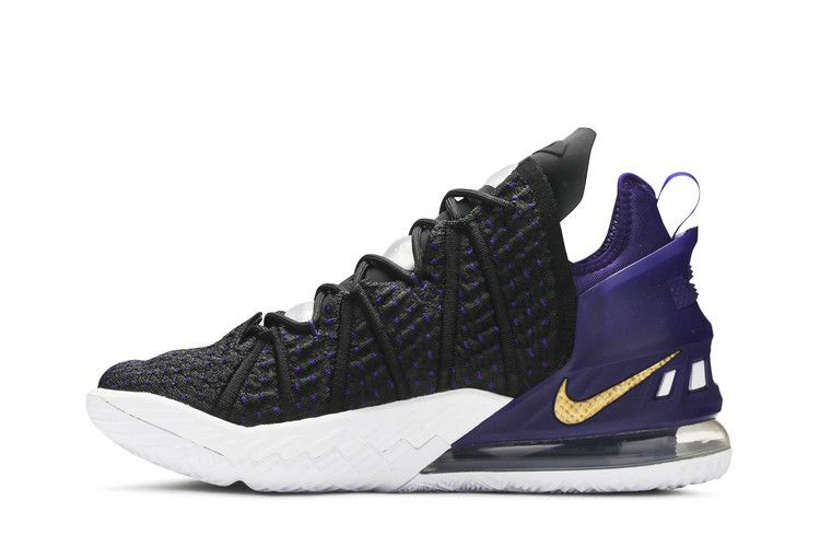 Nike LeBron 18 EP "Lakers" обновляет фирменную обувь Леброна Джеймса, создавая привычную палитру, вдохновленную третьей командой, которую спортсмен привел к чемпионству в НБА. В этой модели использован черный трикотажный материал KnitPosite 2.0, а пятка из TPU выполнена в фиолетовом цвете. Вышитый мини-Swoosh выделяется золотым цветом на носке. Уникальная система амортизации кроссовок включает в себя полноразмерный блок Zoom Air, который переходит в видимый блок Max Air под пяткой.