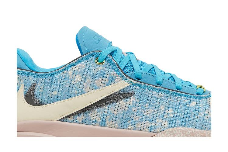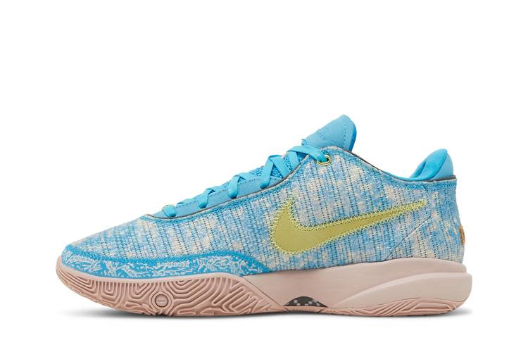 Nike LeBron 20 "All-Star" - это специальная версия фирменных кроссовок Леброна Джеймса для Игры всех звезд НБА 2023 года. Воздушная размерная сетка используется в верхней части, состоящей из пудрово-голубых и белых нитей, и акцентирована лаймово-зеленым Swoosh на медиальной стороне. Противоположную сторону украшают накладные реверсивные логотипы Swoosh белого и серого цветов. Низкие кроссовки опираются на промежуточную подошву Cushlon, на которой изображены некоторые из исторических впечатлений Леброна от игры на Всех Звездах в передней части стопы. Большой блок Zoom Air в передней части стопы обеспечивает отзывчивость на корте, а блок Zoom Air в нижней части пятки - дополнительную амортизацию.