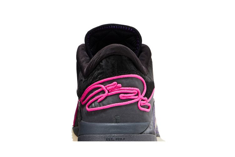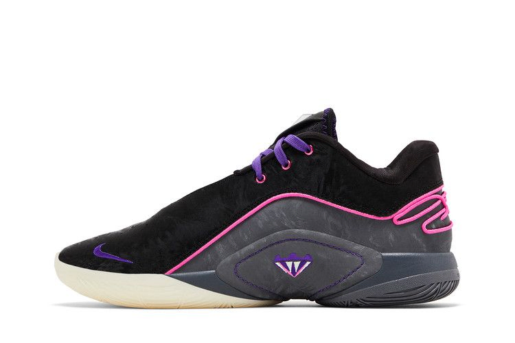 Модель Nike LeBron 22 "Blacklight" с узорчатым верхом из искусственной кожи сплошного черного цвета, контрастирующим с фиолетовыми шнурками и люверсами цвета фуксии. Окантовка цвета фуксии украшает большой логотип Swoosh и подпись ЛеБрона Джеймса на пятке. Светоотражающие детали на язычке обеспечивают повышенную видимость в условиях недостаточной освещенности. Промежуточная подошва Cushlon 2.0, поддерживаемая седлом в средней части стопы и оснащенная амортизацией Zoom Air в носочной и пяточной частях. Резиновая подошва с разделителем имеет светящуюся в темноте отделку в передней части стопы.