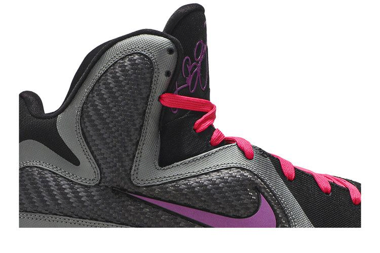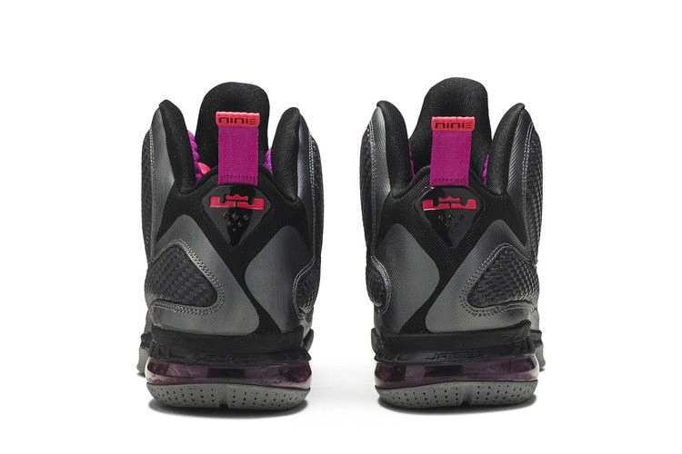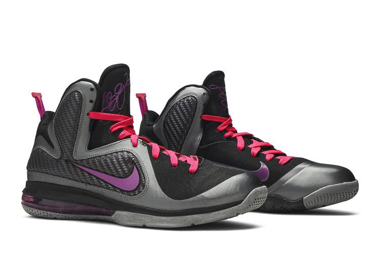 Одна из многих моделей в стиле Майами, появившихся за время выступлений Леброна в команде Heat, фирменная модель LeBron 9 "Miami Nights" - это кивок в сторону яркой ночной жизни Волшебного города. Верх кроссовок выполнен в прохладном сером цвете с черными панелями, которые символизируют ночь, а виноградные и вишневые акценты на шнурках, Swoosh и пятке Max Air символизируют оживленную клубную сцену Саут-Бич.