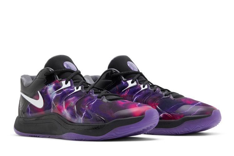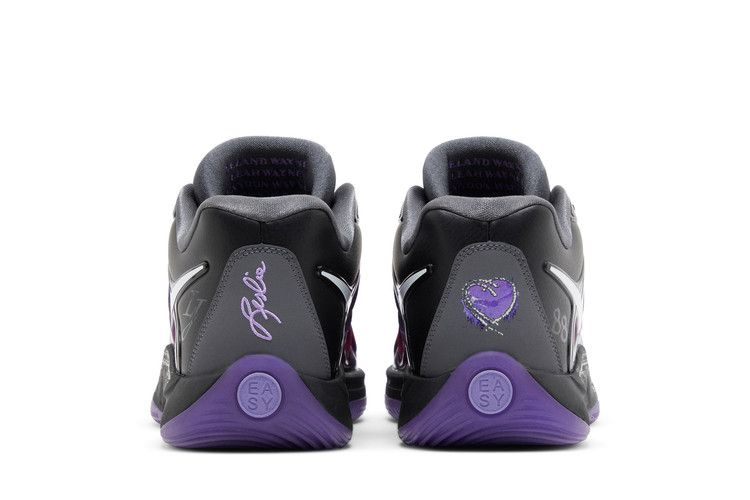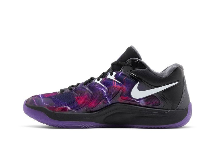 Metro Boomin x Nike KD 17 'Producer Pack' объединяет близнецов Кевина Дюранта - его страсть к баскетболу и музыке. Текстильный верх покрывает туманный узор в агрессивных и пурпурных оттенках, пронизанный белой графикой молний и усиленный полупрозрачным каркасом из TPU, вдохновленным Air Max Plus. На украшенном язычке изображена силуэтная фигура из альбома Metro "Not All Heroes Wear Capes", а на пятке правого ботинка - графика сердца хип-хоп-продюсера. Кроссовки опираются на легкую межподошву из пеноматериала с блоком Zoom Air в носочной части и амортизацией Nike Air в пятке.