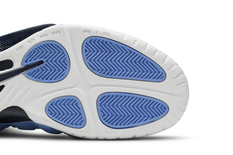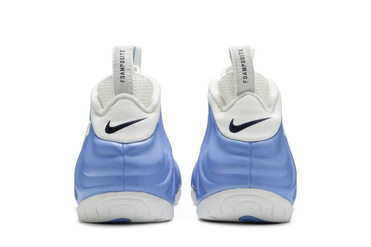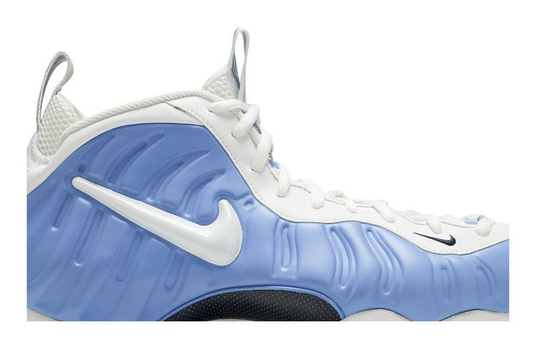 Впервые представленные Пенни Хардауэем в 1997 году, Nike Air Foamposite Pro стали новаторскими как по конструкции, так и по стилю. Вариант "University Blue", появившийся в январе 2003 г., изменил фирменную скульптурную форму с матовым покрытием, отделкой из зернистой кожи и классическим брендингом в трехцветной палитре. Полосатые вставки помогают входить во внутренний сетчатый ботинок. Стелька из углеродного волокна, подошва Air-Sole и резиновая подошва повторяют эту схему.