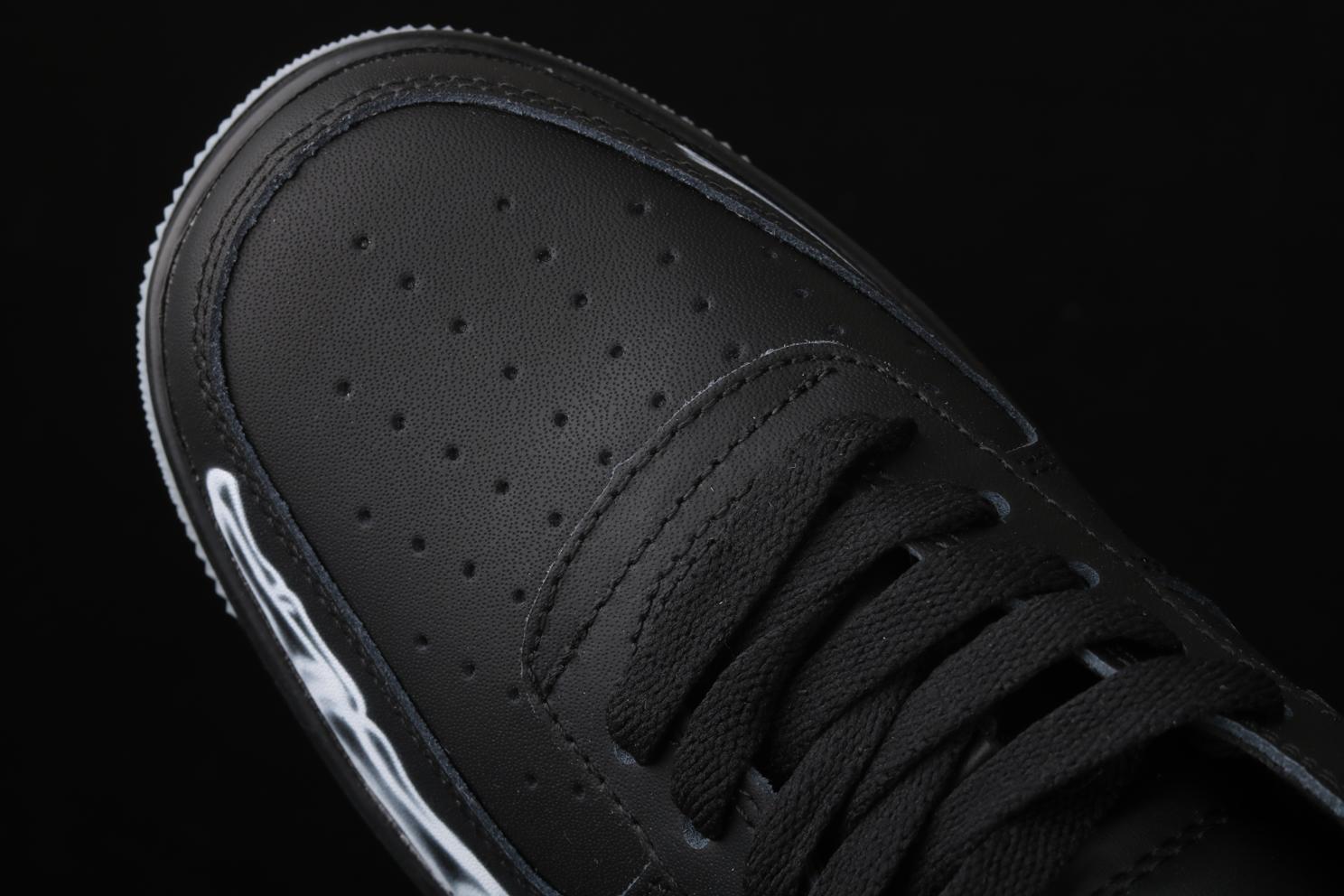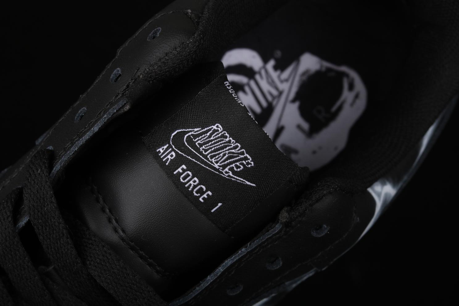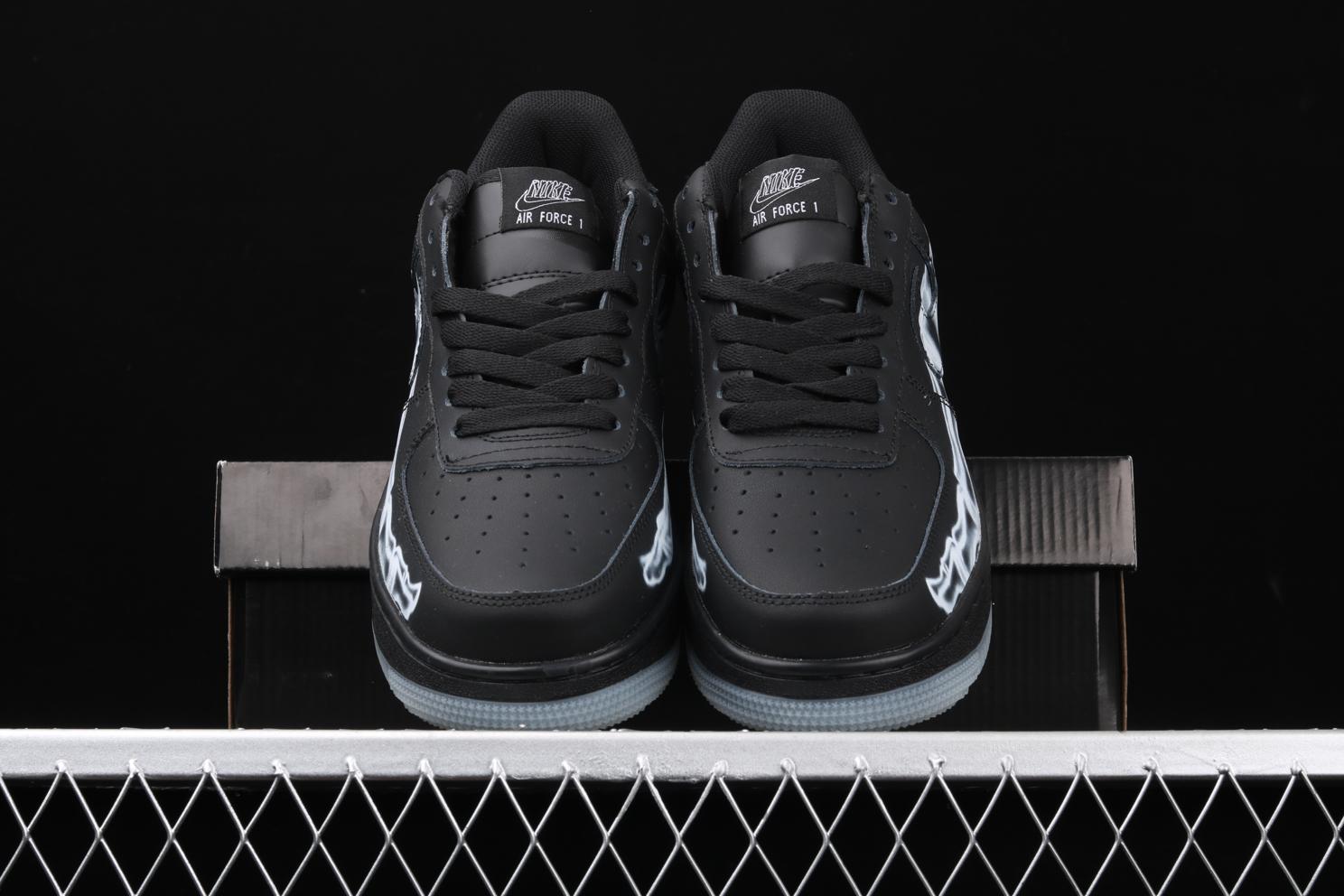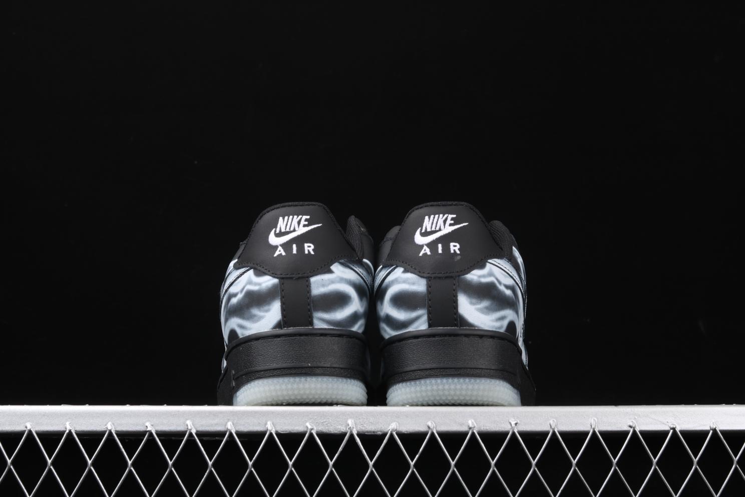 Выполненная в черной коже с анатомической аэрографией с особым эффектом, светящимся в темноте, модель Nike Air Force 1 07 QS Black Skeleton была выпущена 26 октября 2019 года к празднованию Хэллоуина. Кроссовки сохраняют свой сдержанный внешний вид и комфорт, имеют поддерживающие накладки, мягкую амортизацию и полупрозрачное прочное резиновое сцепление.- Цвета: Black/Black/Black