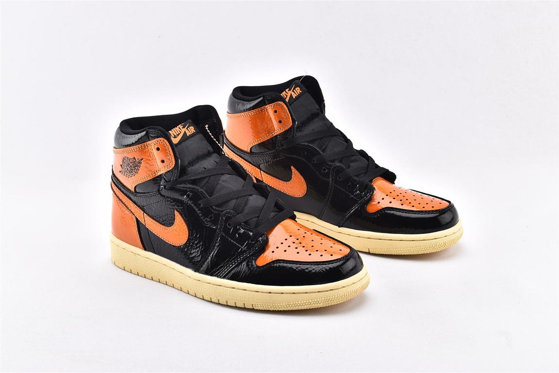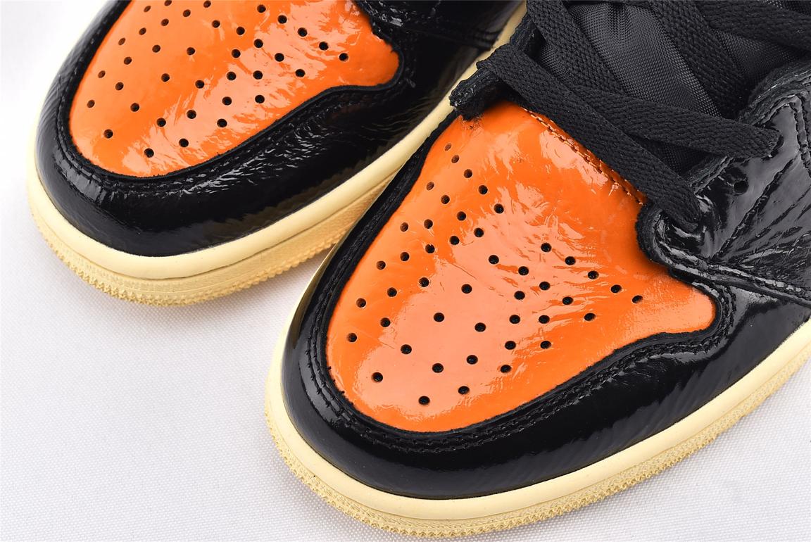 Модель Nike Air Jordan 1 Retro High OG Shattered Backboard 3.0 выпущена в октябре 2019 года. Название кроссовок говорит само за себя - эта модель создана, как дань уважения родному дому. Дизайн выполнен из черного и оранжевого сморщенного лакированного кожаного верха, который напоминает разбитое стекло. На оранжевых накладках воротниковой зоны кроссовок имеются черные эмблемы Varsity Red. Завершает модель подошва с протектором цвета ванили, что обеспечивает отличное сцепление.- Цвета: Black/Pale Vanilla-Starfish