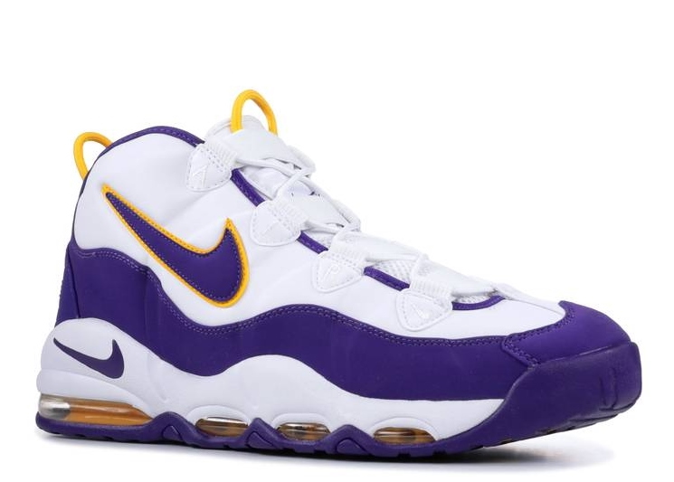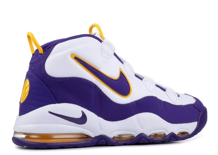 Спустя двенадцать лет после своего дебюта в 2003 году, модель Nike Air Max Uptempo от Дерека Фишера вернулась, добавив цвета LA Lakers в честь бывшего разыгрывающего. Эта версия сохраняет атмосферу 90-х, чередуя пурпурный, желтый и белый цвета на явно не тонком верхе, который также украшен винтажным логотипом той эпохи. Крупные кружевные петли, увеличенная защита мыска и несколько окон с воздушными вставками дополняют образ.- Цвета: White/White-White-Court Purple