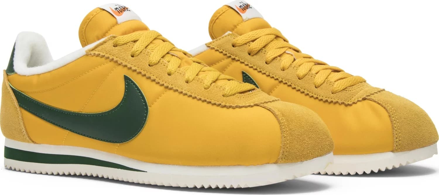 Компания Nike, навсегда связанная со своим родным штатом, регулярно отдает дань уважения Орегонскому университету, одевая некоторые из своих самых популярных моделей в зеленые и желтые цвета. Один из классических силуэтов бренда, это нейлоновое издание Cortez передает школьный дух, сочетая желто-охристый верх с зеленым Swoosh. Выпущенная в 2017 году модель "Oregon" имеет на стельке римскую цифру XLV, означающую 45 лет со дня дебюта оригинальных кроссовок Cortez.- Цвета: Yellow/Gorge Green