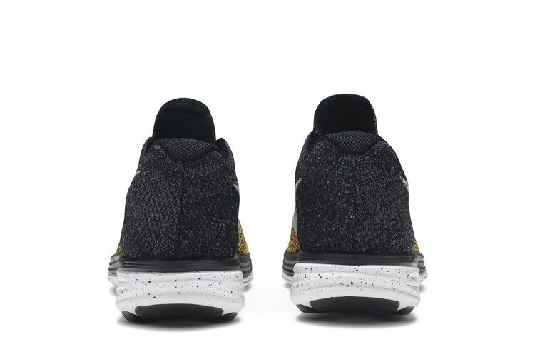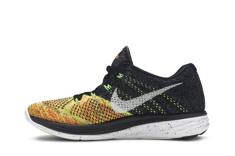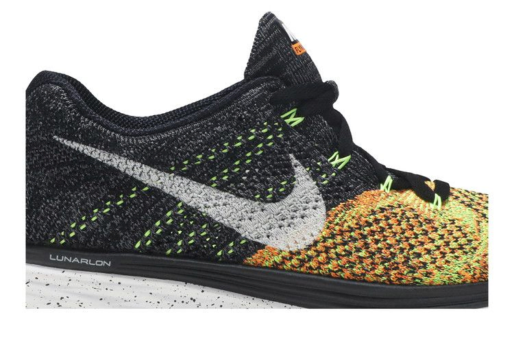 Представленная в 2015 году модель Nike Flyknit Lunar 3 - это гибридный силуэт, в котором эластичный тканый верх сочетается с энергичной подошвой Lunarlon. В этой оригинальной расцветке Flyknit черного цвета, яркое сочетание цветов Total Orange и Electric Green, усиливающееся к носку, а также контрастная белая подошва и черная подошва в крапинку.
