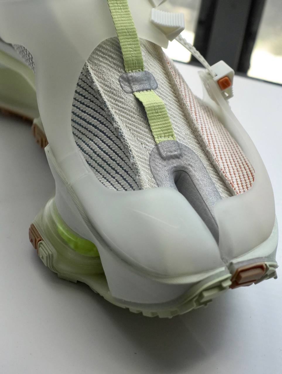 Представляя собой сплав старого и нового, Nike ISPA Road Warrior 'Volt' демонстрирует уникальный дизайн, заимствующий инновации из моделей Nike во всех дисциплинах. Силуэт напоминает Air Zoom Alphafly Next%, открытая плавающая пятка напоминает ранние прототипы Nike Shox, а возврат энергии, обеспечиваемый с помощью зум-подушек с двойным стеком, напоминает Air Zoom BB NXT. Наконец, верхняя часть из трикотажа с нашивками использует конструкцию с раздельными носками для повышения устойчивости.