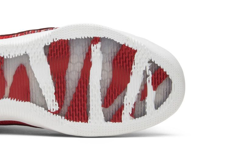 Kobe 11 Elite Low 4KB "Red Horse" - это детали и премиальные штрихи к 11-й фирменной обуви Кевина Дюранта, созданной Лео Чангом. Трикотажный верх начинается с разноцветной носочной части, которая постепенно переходит в вертикальные тональные полосы, ведущие к белой защите пятки, подчеркнутой толстой красной строчкой, и язычку пятки с различными значками. На стельке красуется значок мамбы, а на подошве - полупрозрачное окошко.