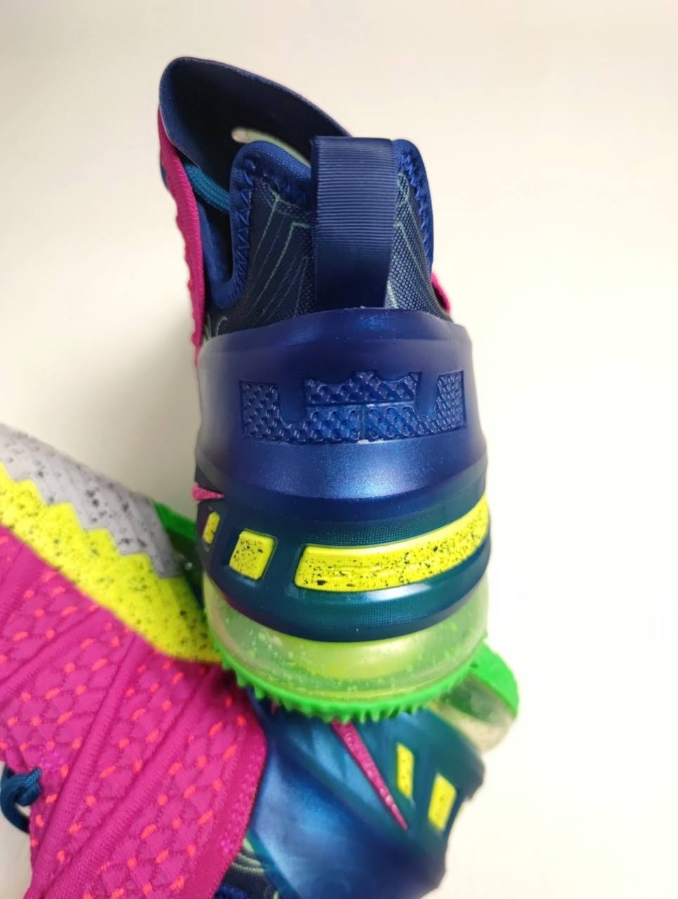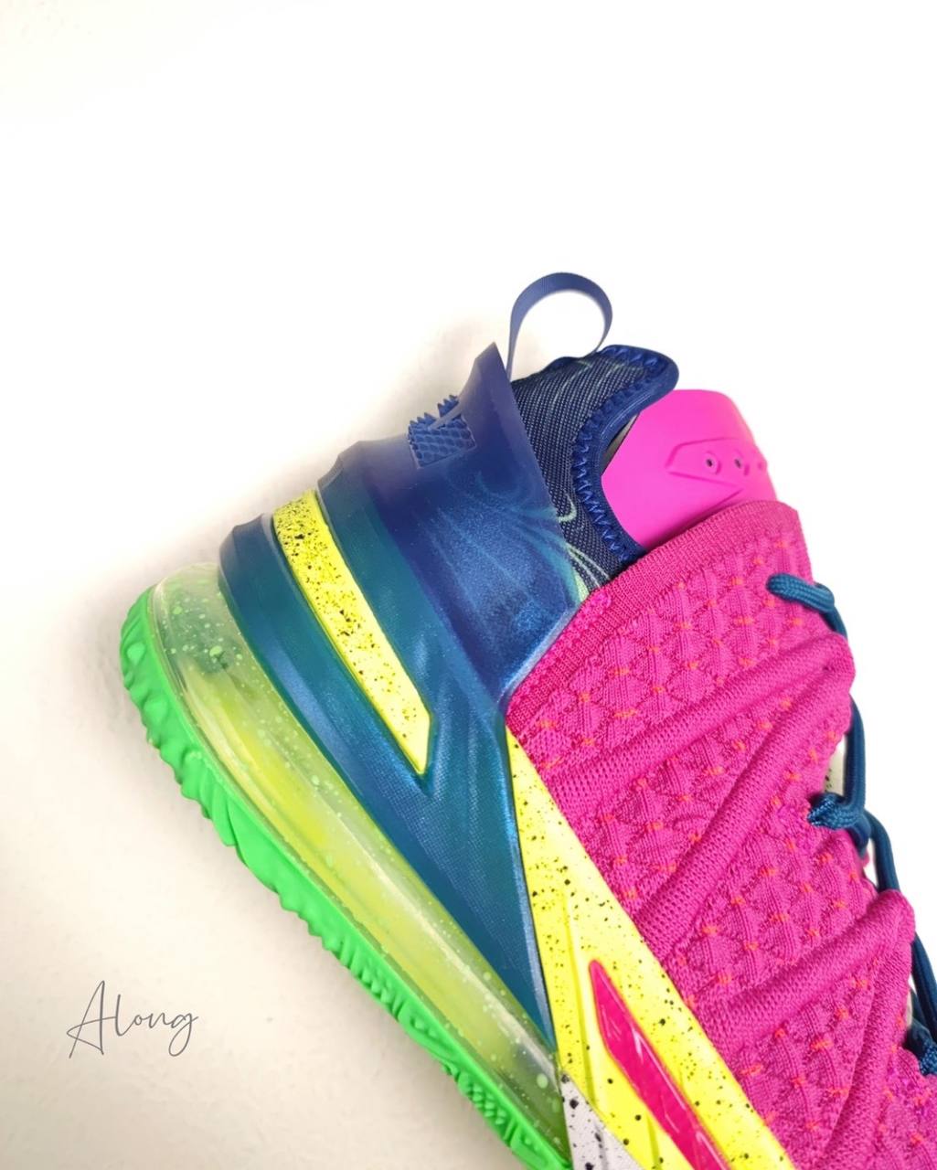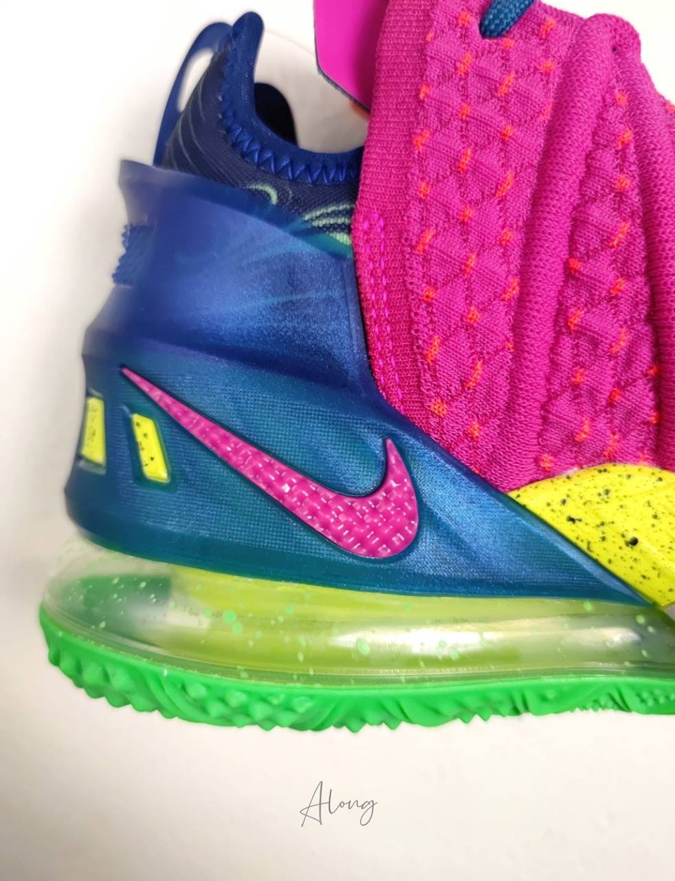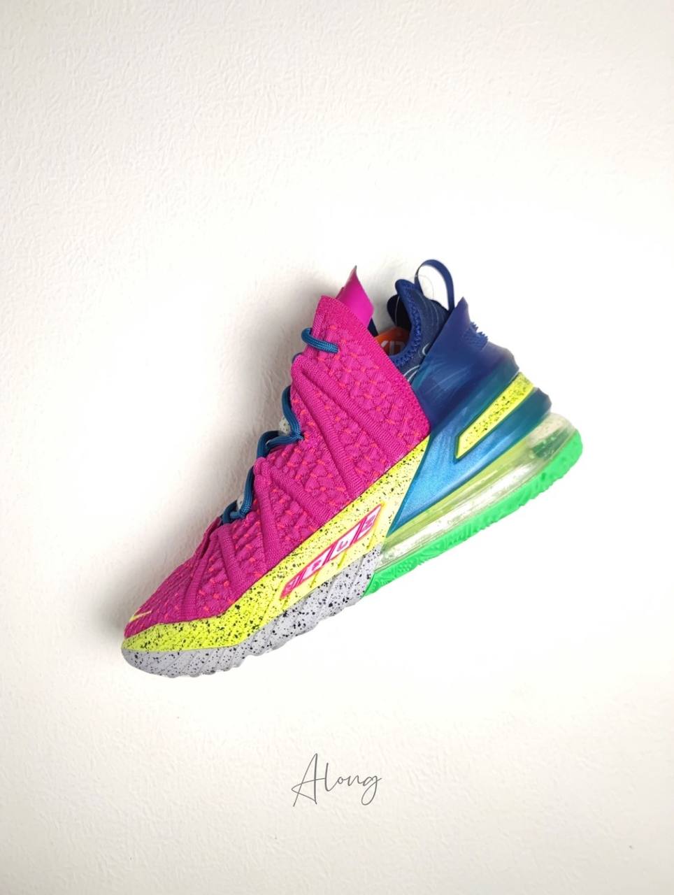 Nike LeBron 18 «Los Angeles By Night» является продолжением силуэта «Los Angeles By Day» с уникальным дизайном, вдохновленным новым родным городом Леброна Джеймса. В этой паре используется верх KnitPosite 2.0 яркого оттенка фуксии, контрастирующий с металлической синей отделкой на внешнем заднике из термополиуретана. Пятнистые детали разбросаны по всей подошве из пеноматериала и видимому блоку Max Air, который удерживает блок Zoom Air во всю длину.- Цвета: Pink Prime/Multi-Color