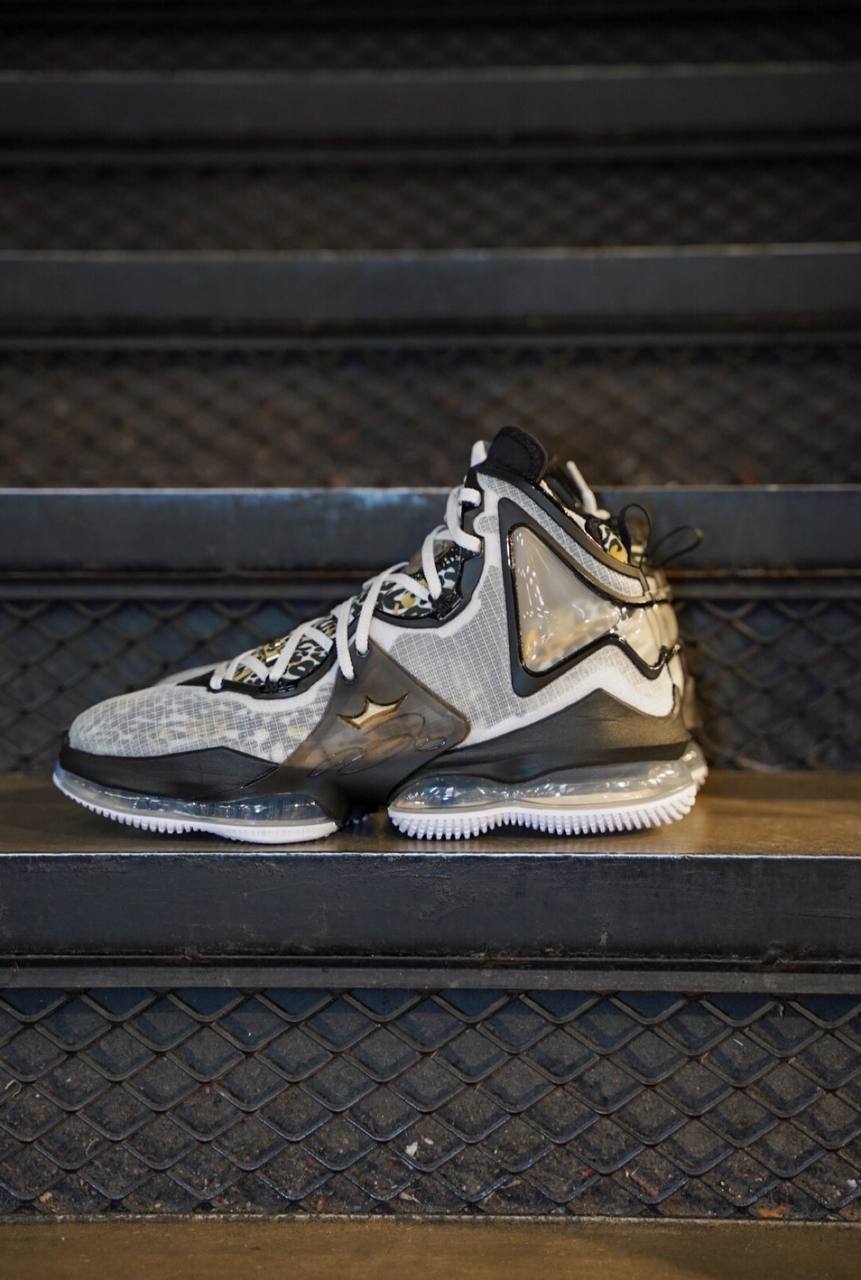 Nike LeBron 19 EP Leopard - это фирменная обувь Леброна Джеймса, выполненная в актуальной двухцветной гамме. Как и его предшественник, силуэт разработан Джеймсом Петри и имеет гибридную систему амортизации, которая обеспечивает как отзывчивость на корте, так и мягкость приземления. Передний блок Zoom Air сочетается с двухкамерным блоком Max Air под пяткой, оба блока усилены резиновой подошвой белого цвета.- Цвета: White/Metallic Gold/Black