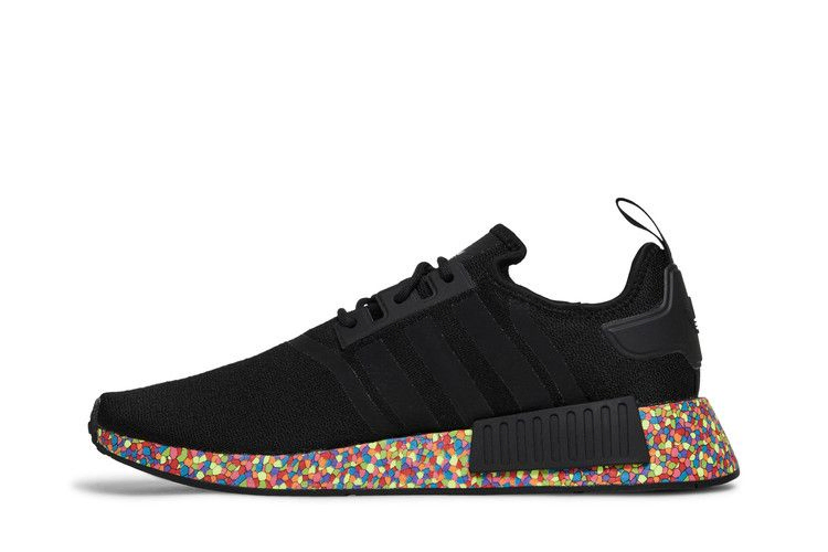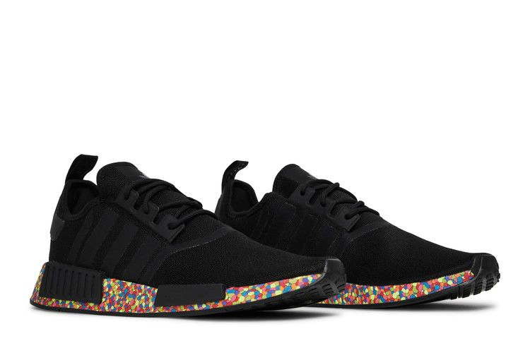 Мозаичный пакет adidas NMD_R1 'Mosaic Boost Pack' обновляет легкие беговые кроссовки с дико разнящимися дизайнами верха, похожего на носок, и амортизирующих элементов. Первая модель выполнена в монохромном черном цвете и представляет собой эластичный трикотаж с тональным трехполосным брендингом и тиснением в виде трилистника на пятке. Соответствующие черные заглушки EVA выделяются на фоне полноразмерной промежуточной подошвы Boost, покрытой ярким многоцветным принтом, имитирующим причудливо выложенную мозаичную плитку.