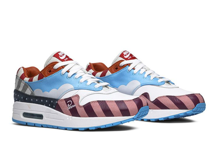 Часть сотрудничества между Nike и колоритным голландским художником, Parra x Air Max 1 'Friends & Family' выделяется ярким цветовым контрастом и несовпадающими узорами. Эта версия классических кроссовок Тинкера Хэтфилда, выпущенных в 1987 году, была представлена в июле 2018 года только для друзей и родственников Парры. Немного отличаясь от релизной версии, это издание создает беззаботную атмосферу с красной полоской на воротнике и средней части стопы, на которой размещена графика, вдохновленная небом.