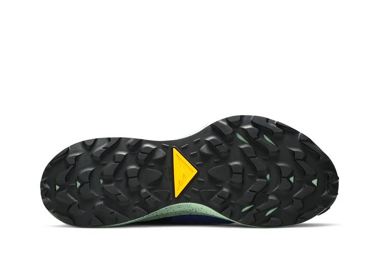 Модель Nike Pegasus Trail 2 Gore-Tex "Mystic Dates Blue" демонстрирует цветовую схему, вдохновленную ACG, на беговых кроссовках, созданных, чтобы противостоять пересеченной местности и суровой погоде. Надпись "GORE-TEX" нанесена на медиальную сторону синего сетчатого верха, что указывает на водонепроницаемую технологию, которая позволяет ногам оставаться сухими при передвижении по мокрым дорогам и тропам. Мятно-зеленая промежуточная подошва Nike React, усиленная резиновой подошвой, напоминающей шипы велосипедных шин, обеспечивает превосходное сцепление.