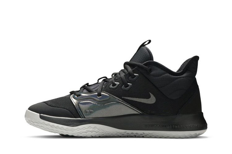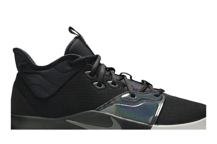 Звезда НБА Пол Джордж выпустил свою третью фирменную обувь в начале 2019 года. Эта слегка измененная версия, кроссовки Nike PG 3 'Iridescent', дебютировала в мае 2019 года. Верхняя часть кроссовок, выполненная в полностью черном цвете, изготовлена из тканого сетчатого текстиля и усилена голографическими накладками в средней части стопы, которые переходят в шнурки. Снизу кроссовки опираются на гладкую резиновую подошву с передним блоком Zoom, завершающим обтекаемый дизайн.