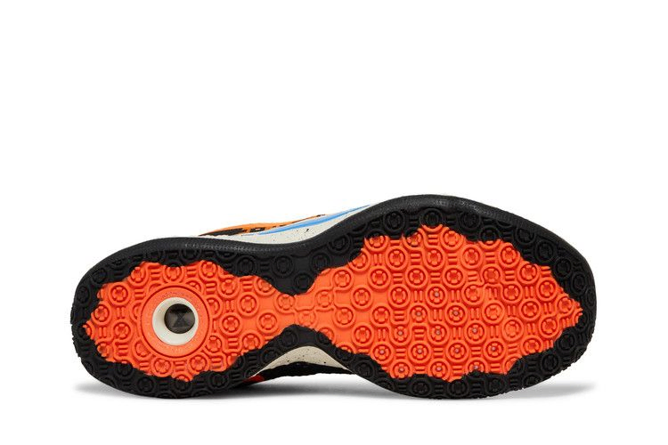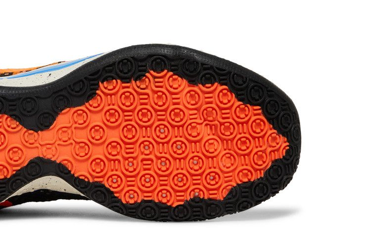 Nike PG 4 EP "Digi Camo" имеют уникальный черно-оранжевый принт в стиле милитари на боковой текстильной стороне молнии. На противоположной стороне используется открытая черная сетка, а белая сетчатая основа покрыта синей внутренней тесьмой. Промежуточная подошва с крапинками Off-White содержит легкую стельку с полноразмерной амортизацией Nike Air, обеспечивающей мгновенное ощущение отзывчивости.