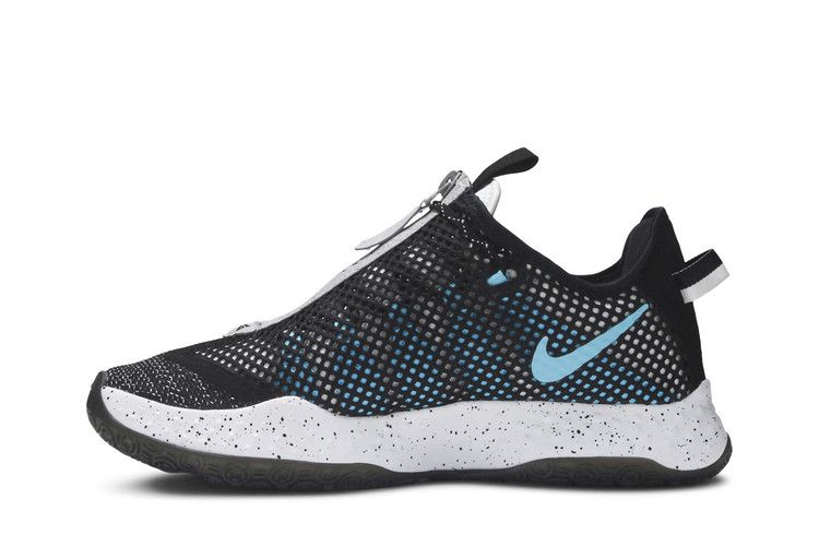 Nike PG 4 "Navy Teal" демонстрирует замысловатый узор на верхней части четвертых фирменных кроссовок Пола Джорджа, состоящий из контрастных черных и белых волокон на трикотажной молнии, придающей кроссовкам обтекаемый профиль. На медиальной стороне тиловый Swoosh сочетается со скоростной системой шнуровки, которая видна под полупрозрачной сетчатой накладкой. Все это опирается на пенопластовую промежуточную подошву с легкими крапинками, которую поддерживает подошва из жевательной резины.