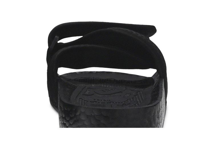 Модель Pharrell x adidas Boost Slide 'Triple Black', созданная в сотрудничестве с талантливым креативщиком, представляет собой стильный и удобный вариант давно известных сандалий бренда для бассейна. Верхняя часть из многослойных синтетических ремешков, застегивающихся на крючки и петли, а также полноразмерная подошва Boost выполнены в монохроматическом цвете. На стельку нанесен рисунок в стиле рефлексологии Фарелла.