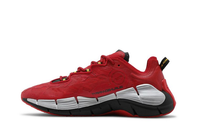 Модель Power Rangers x Reebok Zig Kinetica 2 "Dinozord", выпущенная в рамках большой коллекции, посвященной телевизионному супергеройскому сериалу 90-х годов, вдохновлена боевым кораблем, которым управлял Красный рейнджер. В тренировочных кроссовках используется малиновый текстильный верх с накладкой на передней части стопы, украшенной серебристыми деталями в виде зубов динозавра. На язычке красуется желтая молния рейнджеров Power Rangers и иллюстрированный тираннозавр. Легкая конструкция опирается на отзывчивую промежуточную подошву Floatride Fuel с боковыми стенками, расположенными в динамичной зигзагообразной конфигурации.