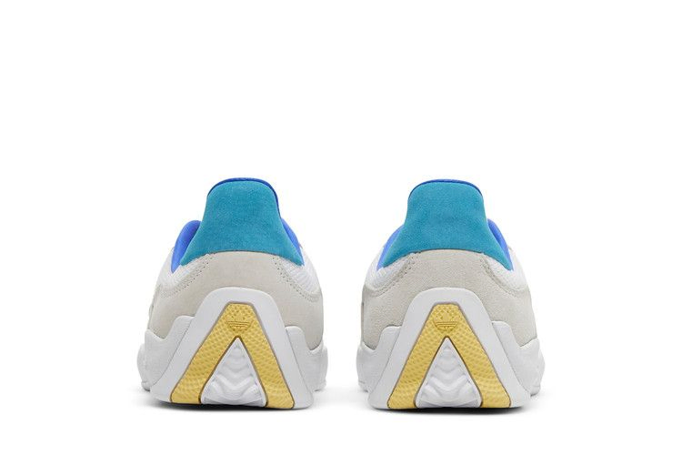 Модель adidas Puig 'Cloud White Multi' добавляет яркие акценты в фирменную обувь Лукаса Пуига. Верхняя часть из белой замши с дышащими сетчатыми панелями выполнена из переработанного материала. Замшевый язычок на пятке выполнен в цвете Signal Cyan, а зазубренные кожаные полоски на трех полосках создают множество ярких акцентов. Формованный носок Adiprene работает в тандеме с высококачественной подошвой EVA. Усиление носка Adituff вокруг передней части стопы обеспечивает износостойкость.