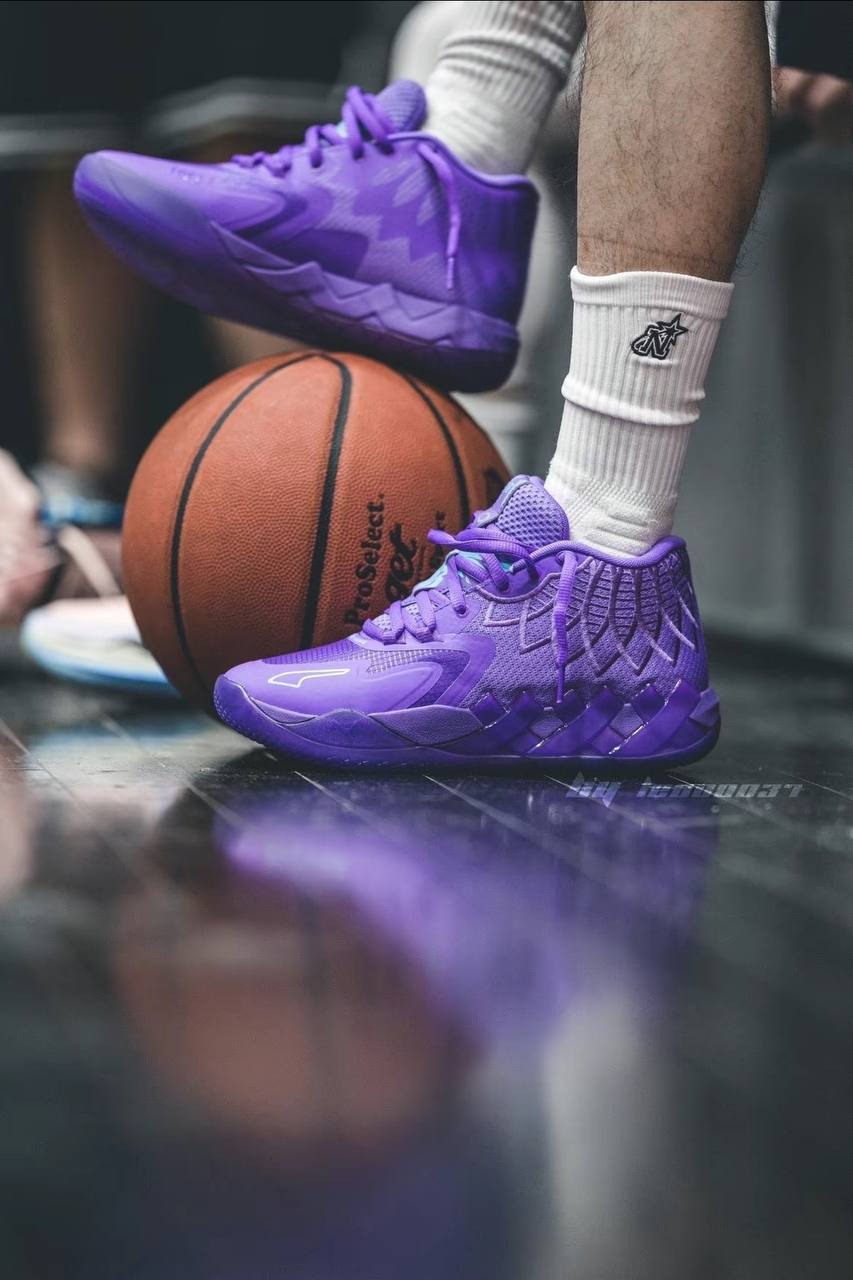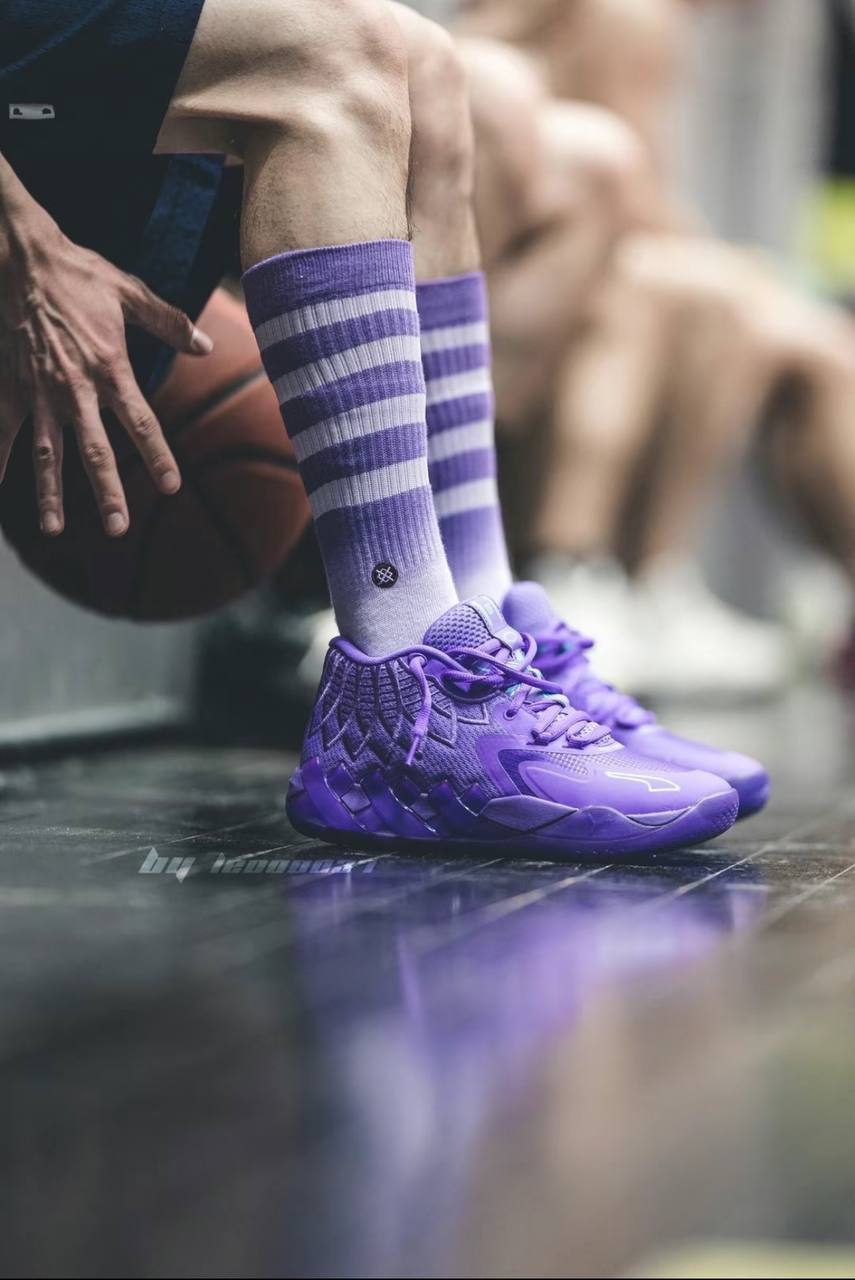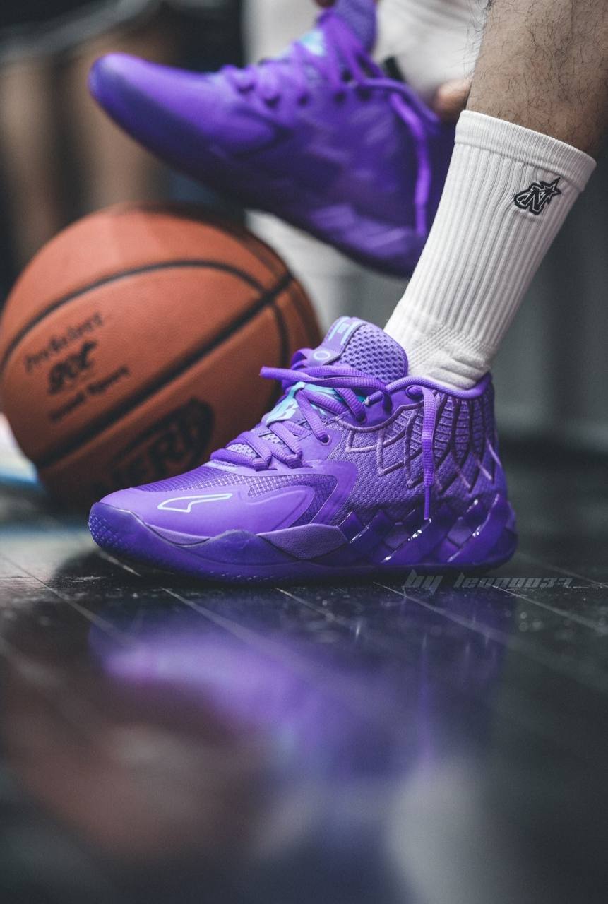 Модель PUMA MB.01 "Queen City" обновляет дебютную фирменную обувь ЛаМело Болла знакомой цветовой палитрой, которая отдает дань уважения команде "Шарлотт Хорнетс". Смелый фиолетовый оттенок заливает трикотажный верх, усиленный тональными накладками без швов и акцентированный элементами брендинга цвета тила. Они включают в себя очерченную полосу Formstrip на боковой стороне носка и личный логотип ЛаМело на язычке. Легкая амортизация обеспечивается благодаря промежуточной подошве Nitro Foam с фиолетовой отделкой.- Цвета: Purple Glimmer/Blue Atoll