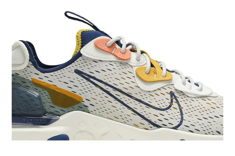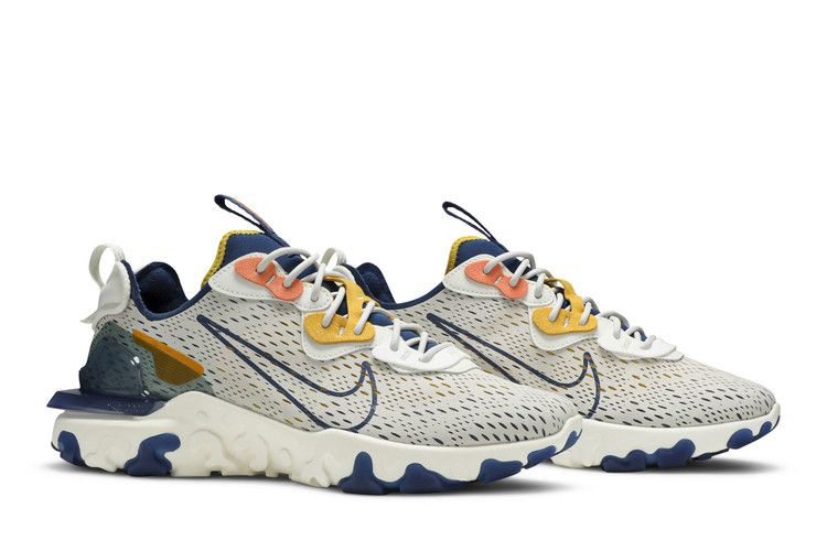 Nike React Vision "Light Orewood Brown" имеют нейтральную отделку бесшовного сетчатого верха, дополненную яркими элементами в виде многослойных люверсов. Эстетика "сделай сам" дополнена открытыми швами на язычке и пятке, которые оснащены язычками для удобства надевания и снятия. Мягкие материалы контрастируют с полупрозрачной пяткой из TPU, выполненной в том же оттенке синего, что и резиновые вставки на подошве. Промежуточная подошва Nike React обеспечивает мягкую посадку.
