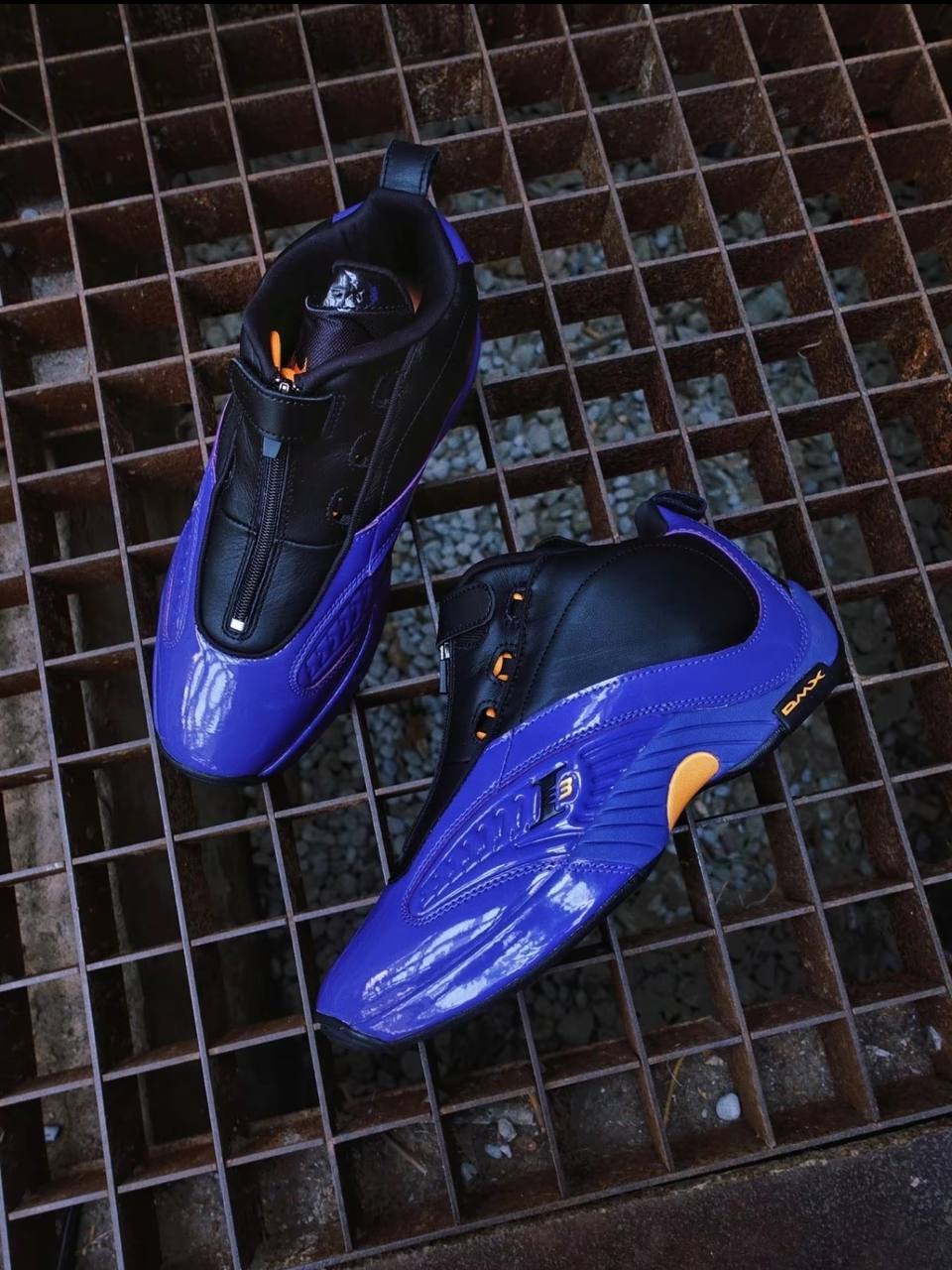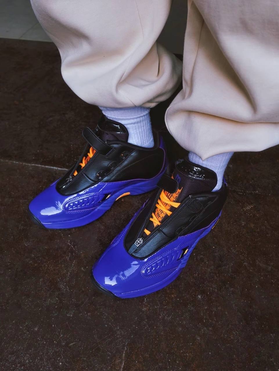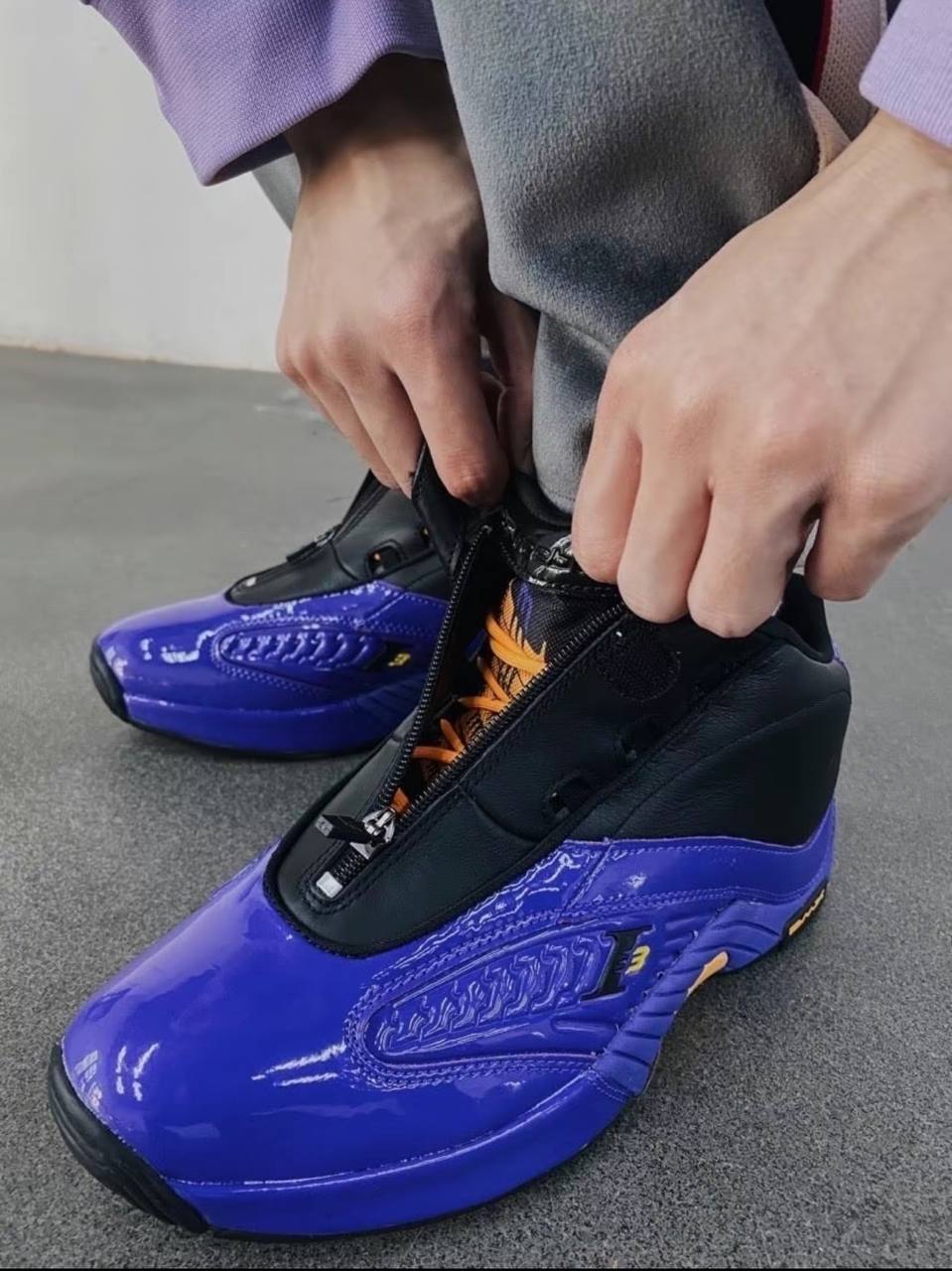 Верх кроссовок Reebok Answer 4 Lakers из фиолетовой и черной кожи застегивается на ремешок с крючком и петлей, а молния скрывает шнурки, придавая им обтекаемый вид. Кожаный язычок на пятке обеспечивает легкое надевание и снимание. Кроссовки опираются на промежуточную подошву из вспененного материала DMX, завершает силуэт резиновая подошва с покрытием "елочка".- Цвета: Black/Fearless Purple/Solar Gold