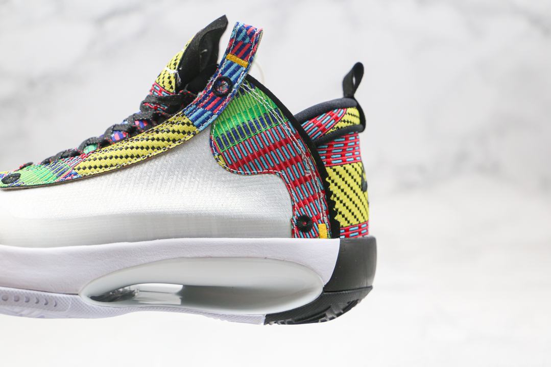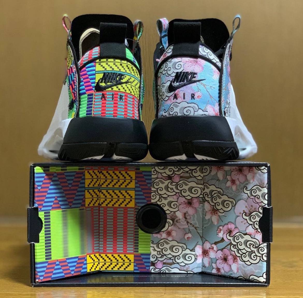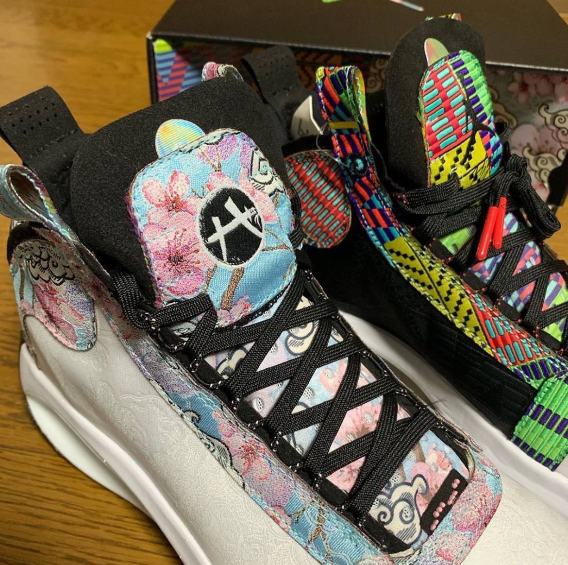 Модель Rui Hachimura x Air Jordan 34 Heritage выпущена 9 августа 2020 года в яркой необычной цветовой гамме, а также имеет инновационные технологии и сохраняет функциональность. Эти кроссовки созданы дизайнером Тейтом Куэрбисом в сотрудничестве с Rui Hachimura и также ориентированы на легкость. Белый верх имеет цветочный принт в пяточной части и на системе шнуровки. Черно-белая мидсоль также подчеркивает этот яркий дизайн.- Цвета: Multi-Color/Multi-Color