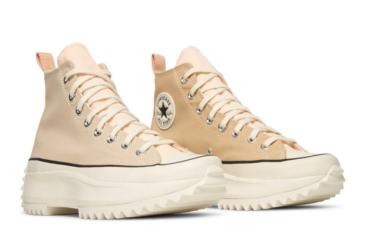 Converse Run Star Hike High 'Tri-Panel' превращает классический силуэт в модные кроссовки на платформе с дизайном в стиле колор-блок. Верх из поликанва имеет различные оттенки загара на каждой боковой панели, а также пастельно-розовые оттенки на язычке и тесьме. На медиальной стороне лодыжки красуется круглая нашивка All Star, а пара хромированных люверсов повышает воздухопроницаемость кроссовок. Контрастная черная полоска уступает место стельке с пенополиуретановой подошвой, которая поддерживается резиной с высоким коэффициентом сцепления в носочной и пяточной частях.