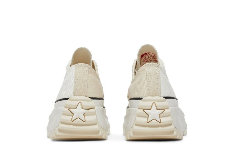 Модель Converse Run Star Hike Low "Summer Denim" демонстрирует приглушенную палитру в смелой интерпретации классической модели Chuck low-top. Традиционный канвас заменен на джинсовую ткань с отделкой Vintage White на боковой стороне и более темной Egret на противоположной. Модель опирается на возвышающуюся платформенную подошву, украшенную брендингом One Star на пятке и укрепленную двухцветной подошвой с зубчатым краем в тех же нейтральных оттенках.