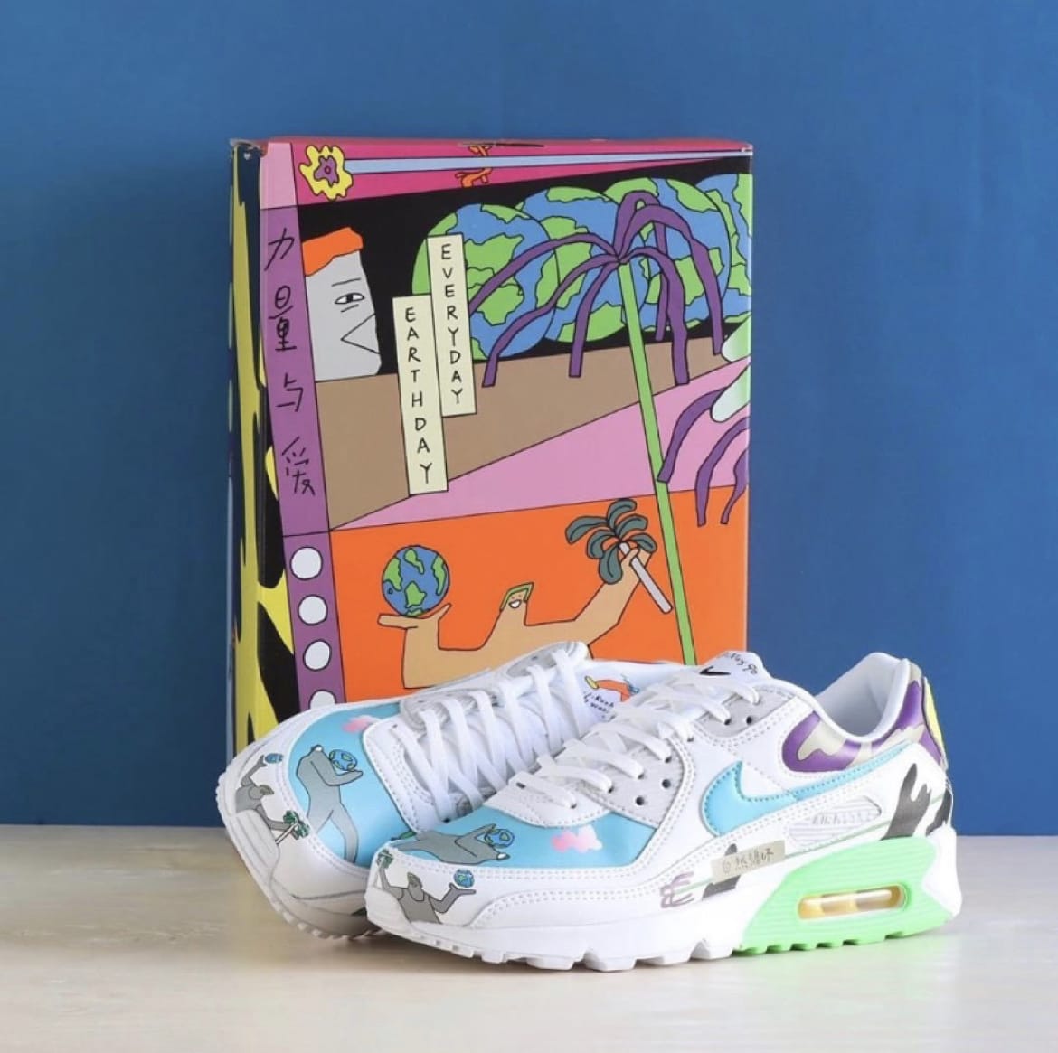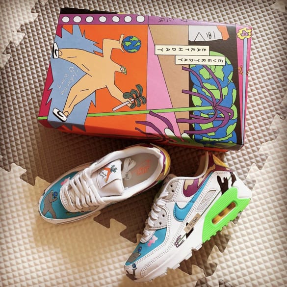 Созданные в сотрудничестве с берлинским художником, кроссовки Ruohan Wang x Nike Air Max 90 Flyleather в честь Дня Земли украшены индивидуальными рисунками на верхе, изготовленном не менее чем из 50% переработанного кожаного волокна, собранного из обрезков в процессе производства кожи. Асимметричные элементы, нарисованные вручную, включают тканые бирки поверх мягкого кожаного язычка. Несогласованные цвета отличают некоторые фирменные элементы кроссовок, в том числе логотип Swoosh, пятку и танкетку мидсоли.- Цвета: Multi-color/Multi-color